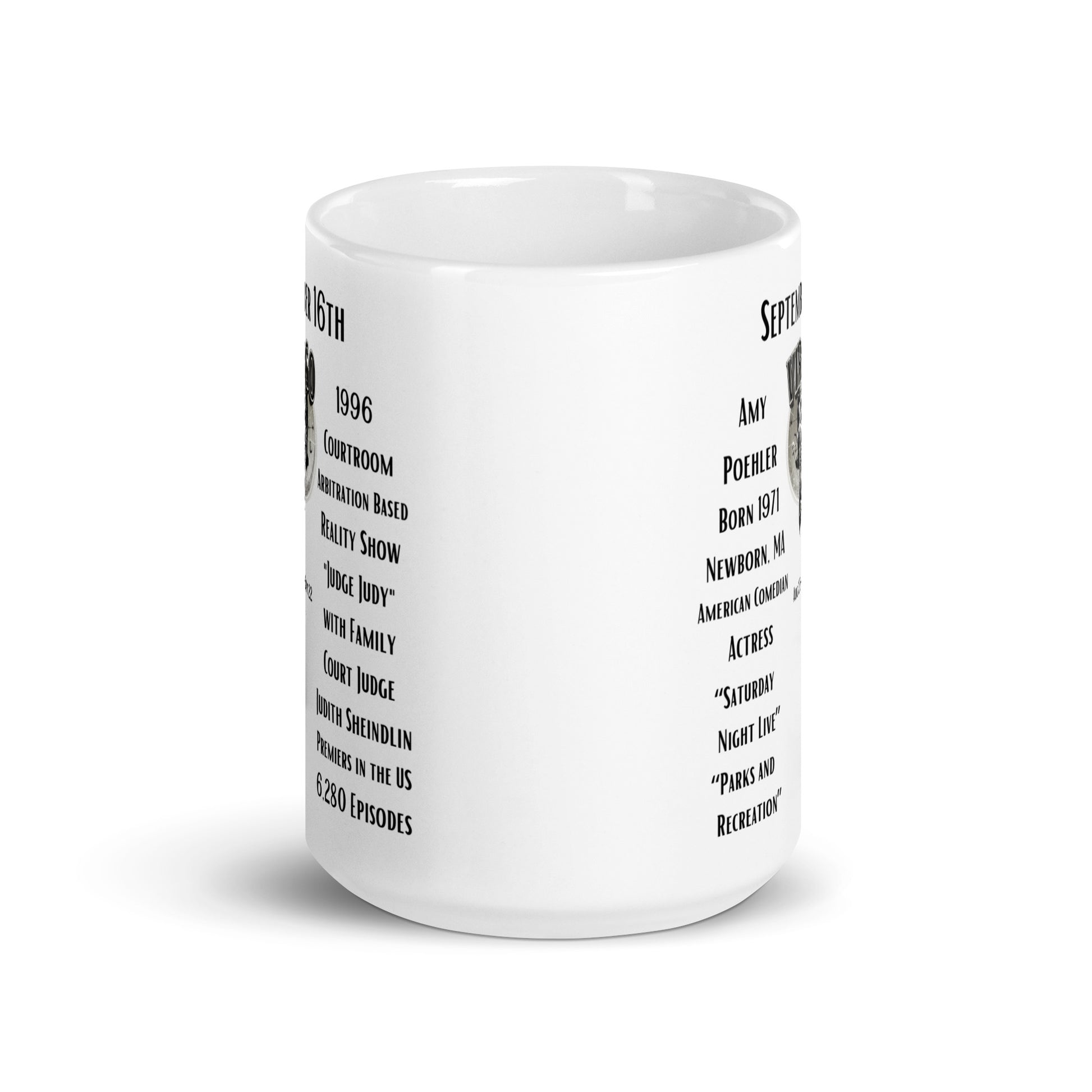 On This Day: Birthday Series - September 16th - (A) Amy Poehler & "Judge Judy" - White glossy mug