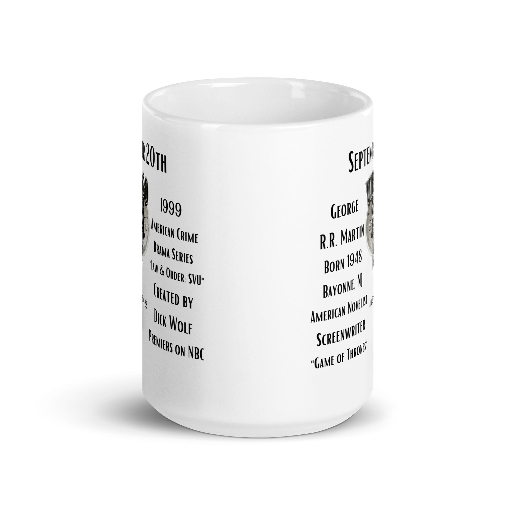 On This Day: Birthday Series - September 20th - (A) George R.R. Martin & "Law & Order: SVU" - White glossy mug