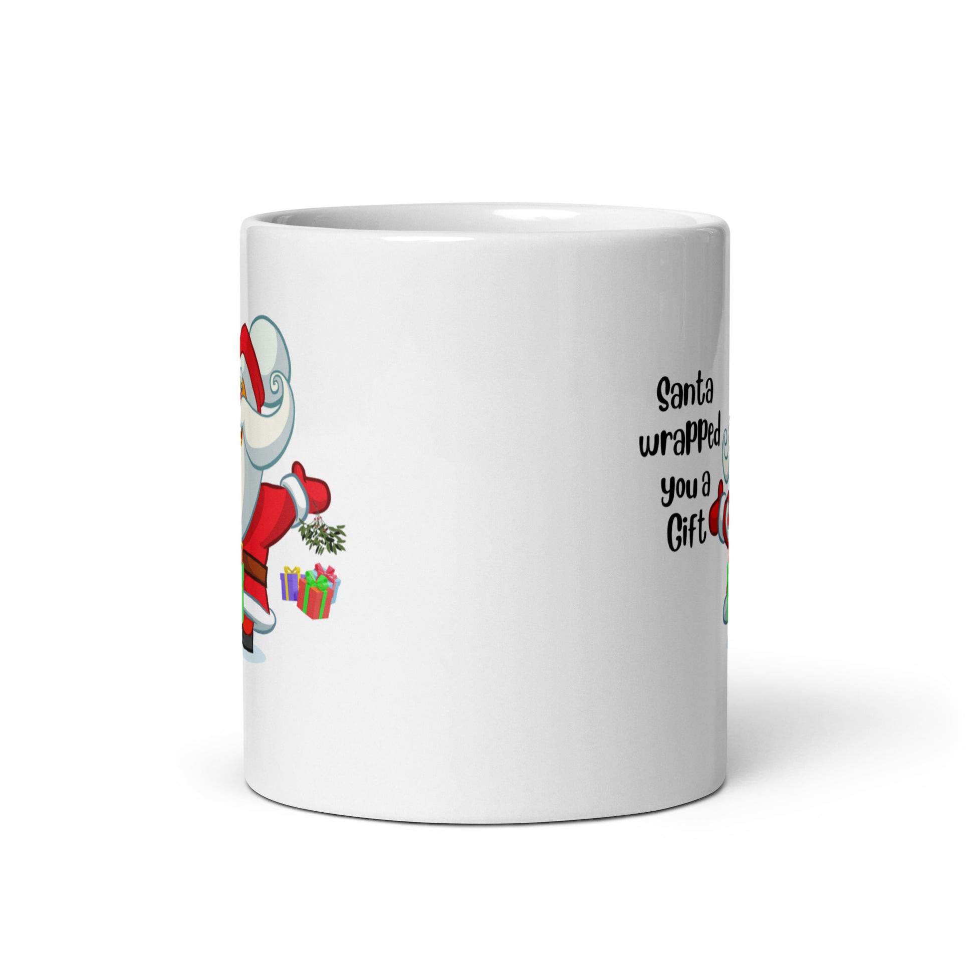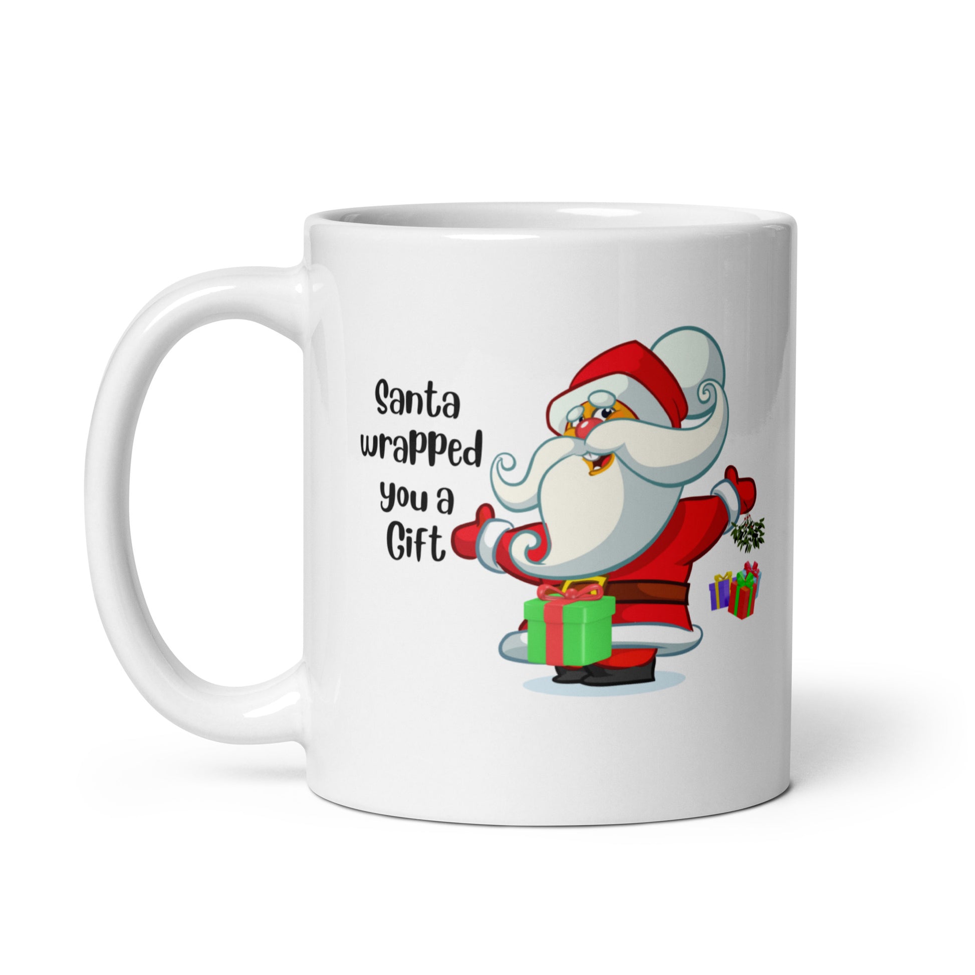 Featuring a whimsical image of Santa Claus holding a present, our "Santa Wrapped you a Gift" mug is sure to provoke laughter and surprise. This cheeky design is perfect for those who appreciate a touch of irreverent humor and enjoy a good laugh with their favorite beverage.