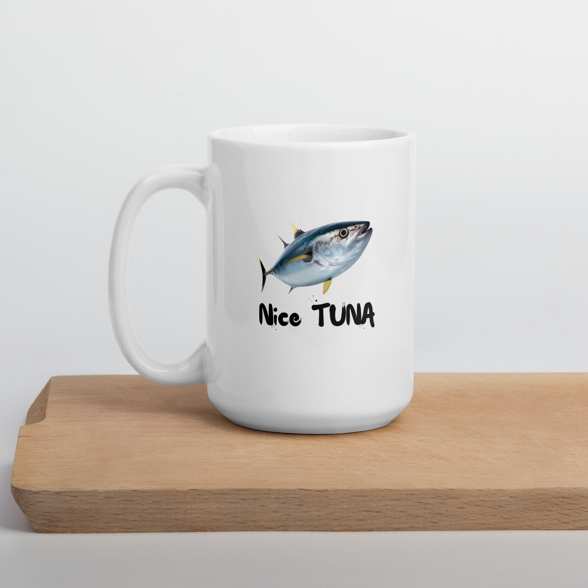 Sip your favorite beverage in style with our Sports & Leisure mug featuring the text "Nice TUNA" and an image of a magnificent tuna. This mug is the perfect companion for fishing enthusiasts and those who appreciate the wonders of the ocean. The bold and captivating design showcases a large and beautiful tuna, capturing the power and grace of this remarkable fish. Made from high-quality materials, this mug is durable and designed to withstand daily use. Its generous capacity allows for a satisfying serving of your favorite coffee, tea, or any hot or cold beverage. Whether you're starting your day with a morning fishing trip or enjoying a relaxing evening by the shore, this Sports & Leisure mug is a great addition to your collection. The comfortable handle ensures a secure grip, while the smooth ceramic surface adds a touch of elegance. Show off your love for fishing and marine life with the "Nice TUNA" text, sparking conversations and admiration from fellow fishing enthusiasts. Embrace the spirit of adventure and appreciation for the ocean with our Sports & Leisure mug. It's the perfect gift for yourself or any fishing enthusiast in your life.