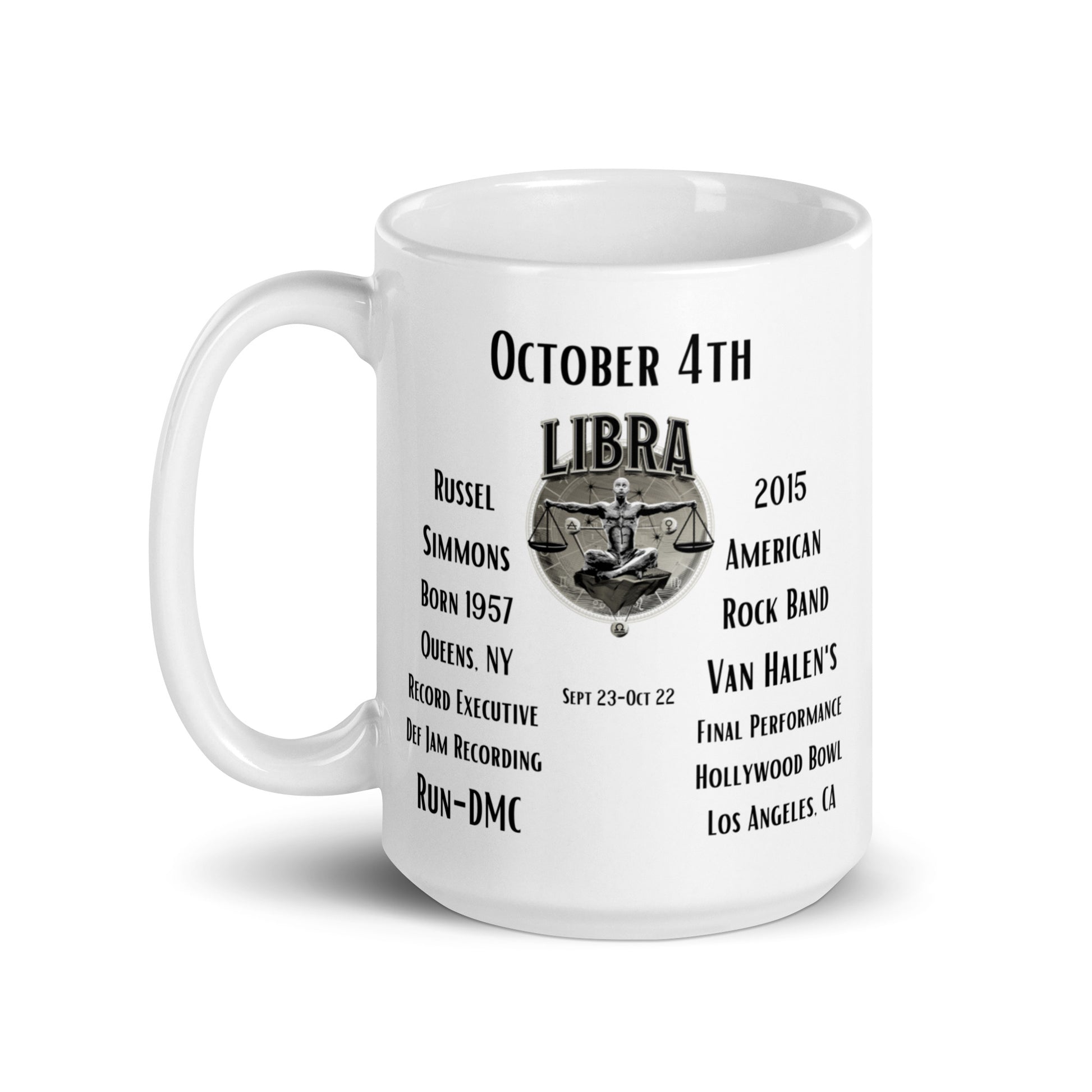 Whether you're celebrating your own birthday or searching for a unique gift for a Libra in your life, our On This Day Birthday Series mug is the ideal choice. It allows you to relive the memories and significance of October 4th with every sip, adding a touch of nostalgia and joy to your daily routine.