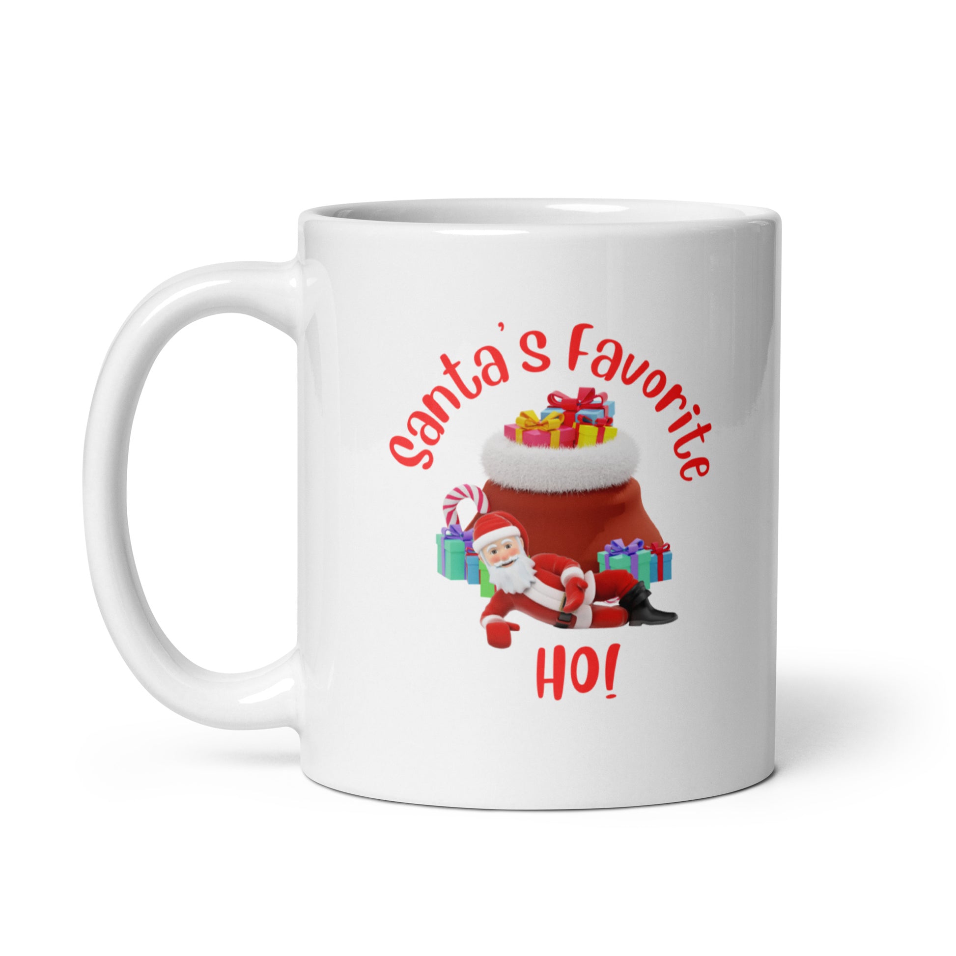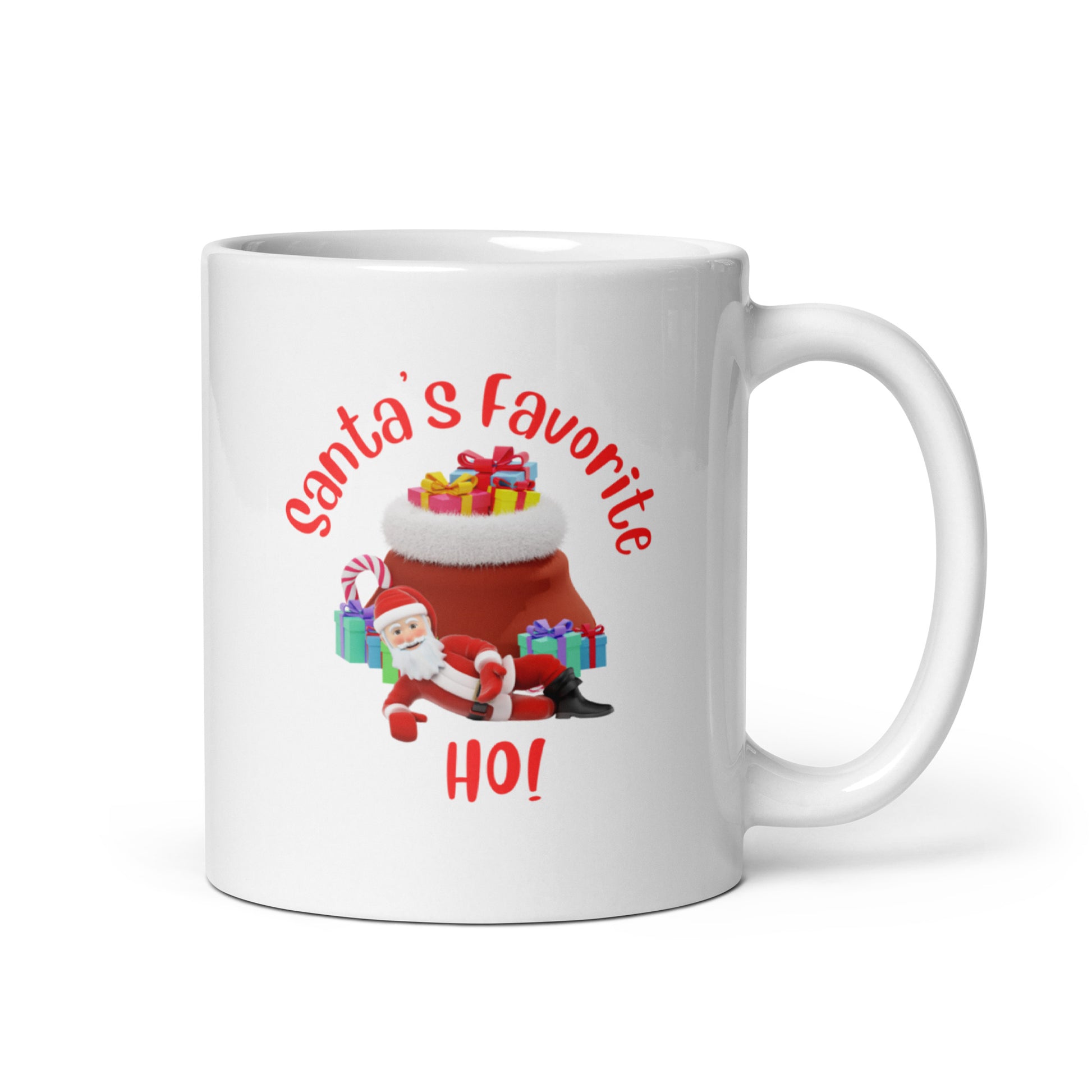 The image of Santa waiting for his favorite helper and the playful text "Santa's Favorite HO!" creates a hilarious juxtaposition that will bring a smile to your face. It's a witty and light-hearted way to add some fun to your holiday festivities. Surprise your friends, family, or coworkers with this amusing mug or treat yourself to a daily dose of laughter.