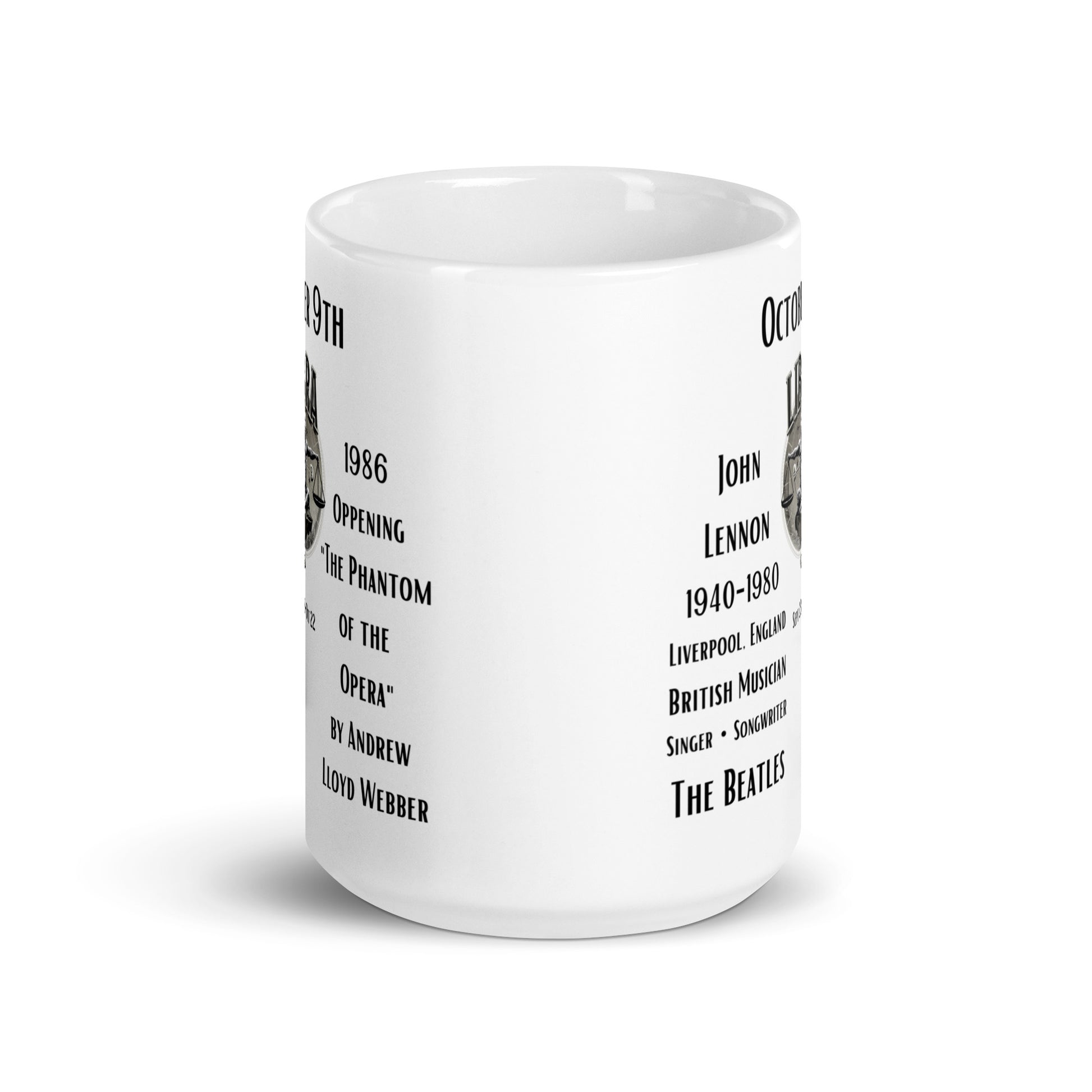 On This Day: Birthday Series - October 09th - (C) John Lennon & Phantom of the Opera - White glossy mug