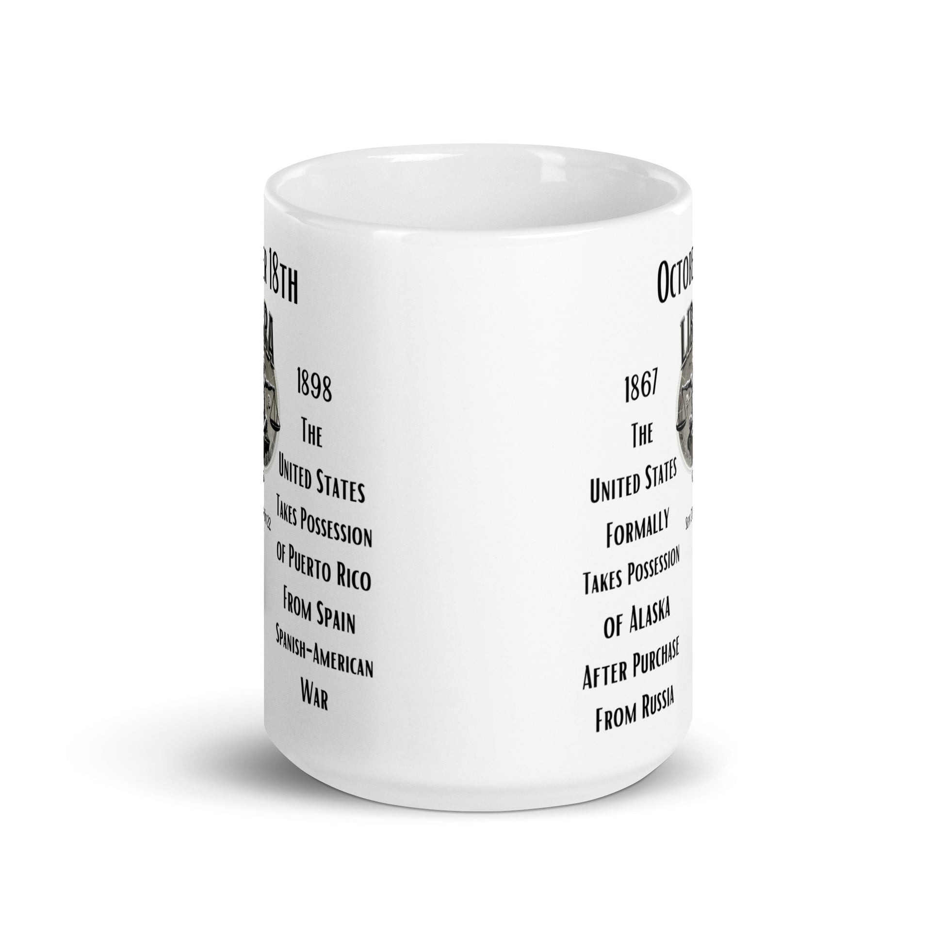 On This Day: Birthday Series - October 18th - (B) US Acquires Alaska & Puerto Rico - White Glossy Mug