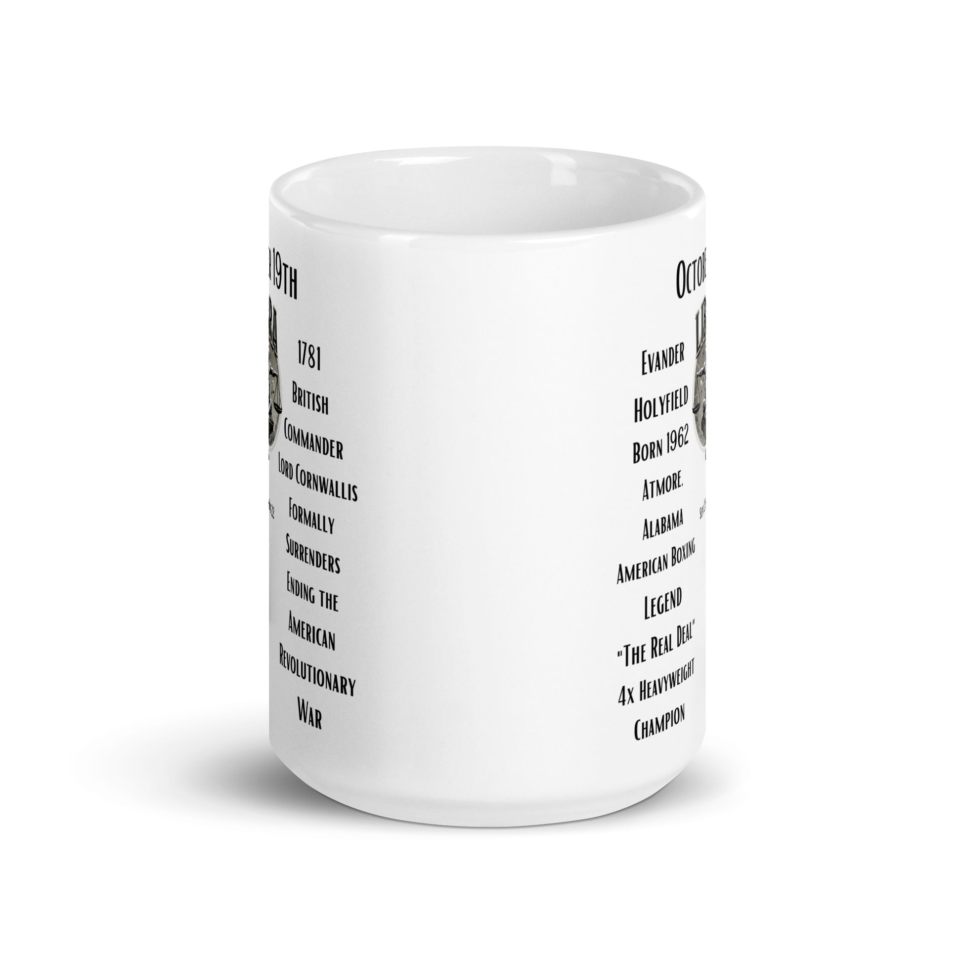 On This Day: Birthday Series - October 19th - (A) Evander Holyfield & Revolutionary War - White Glossy Mug