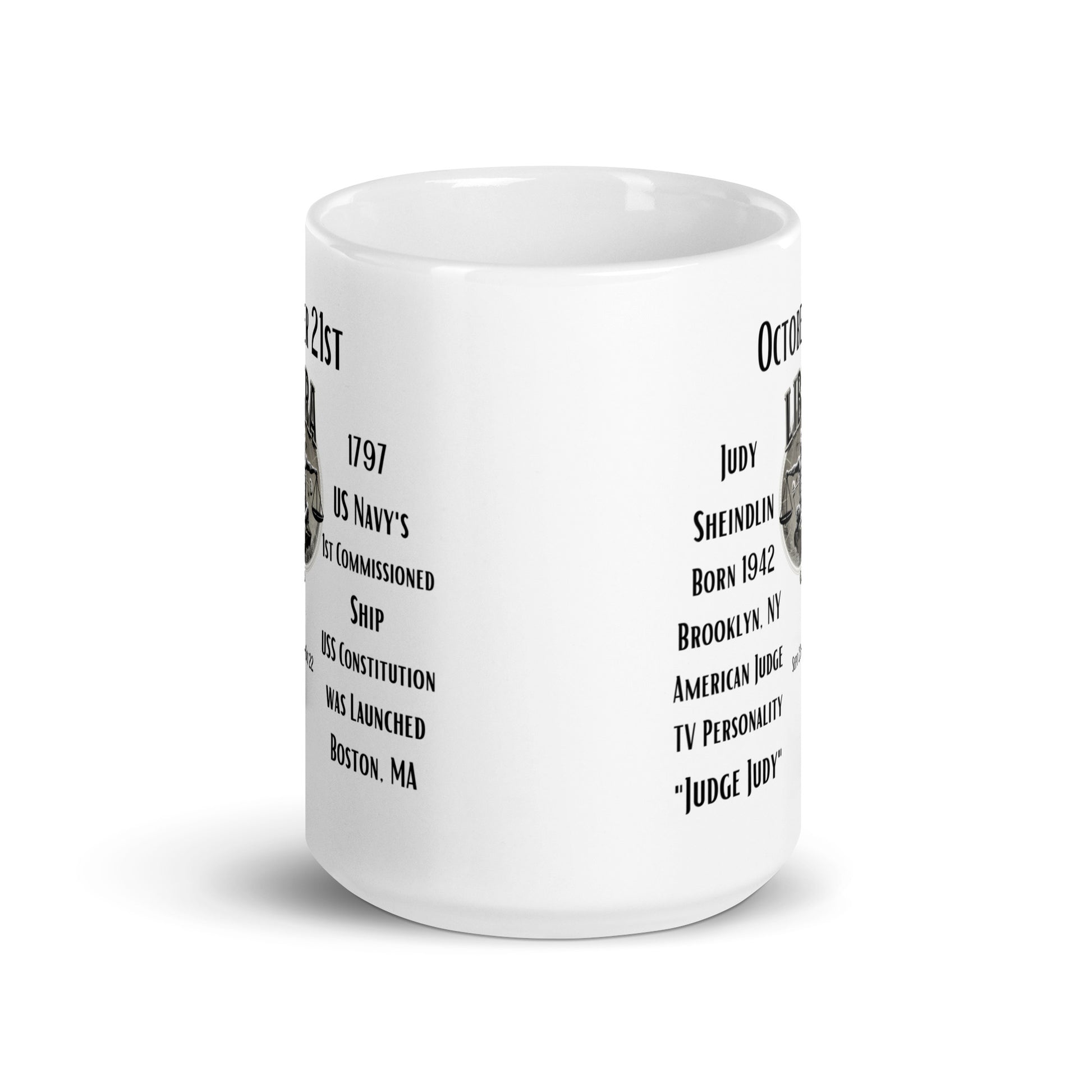 On This Day: Birthday Series - October 21st - (A) Judith Sheindlin & the US Navy - White Glossy Mug
