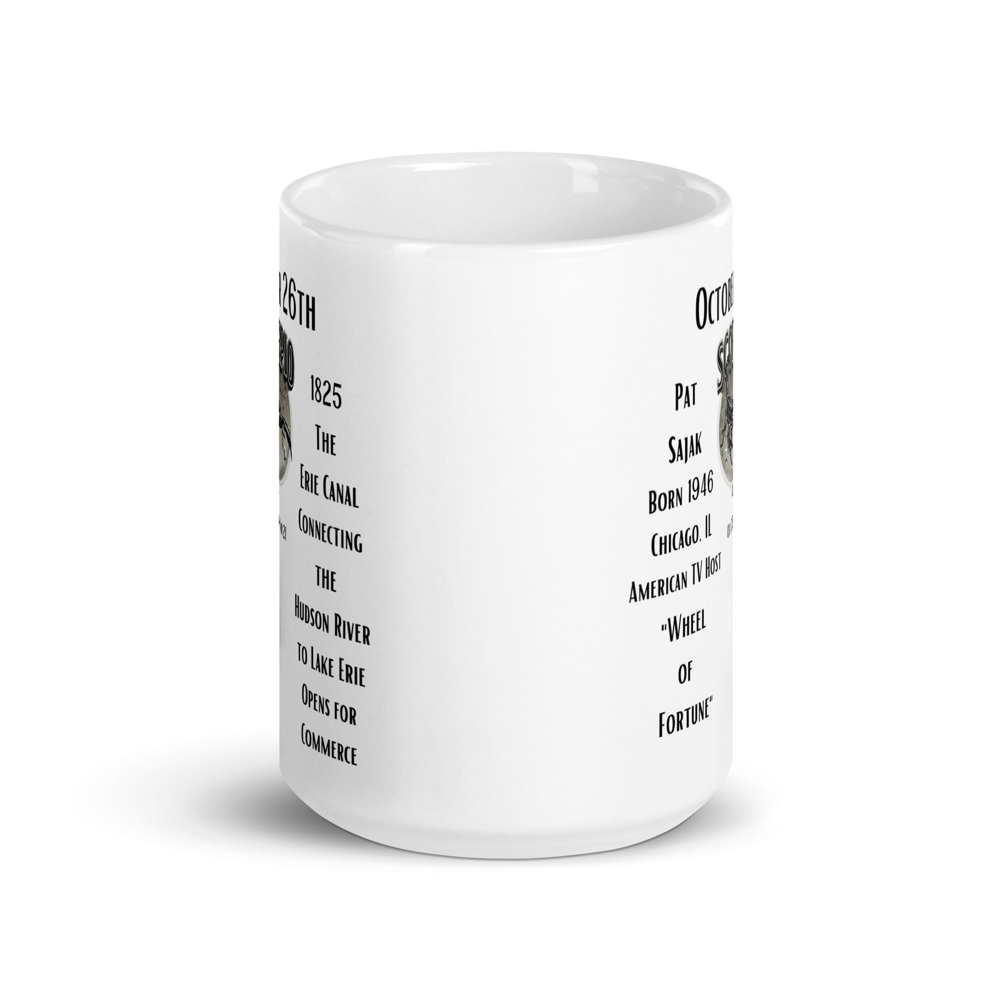 On This Day: Birthday Series - October 26th - (A) Pat Sajak & The Erie Canal -White glossy mug