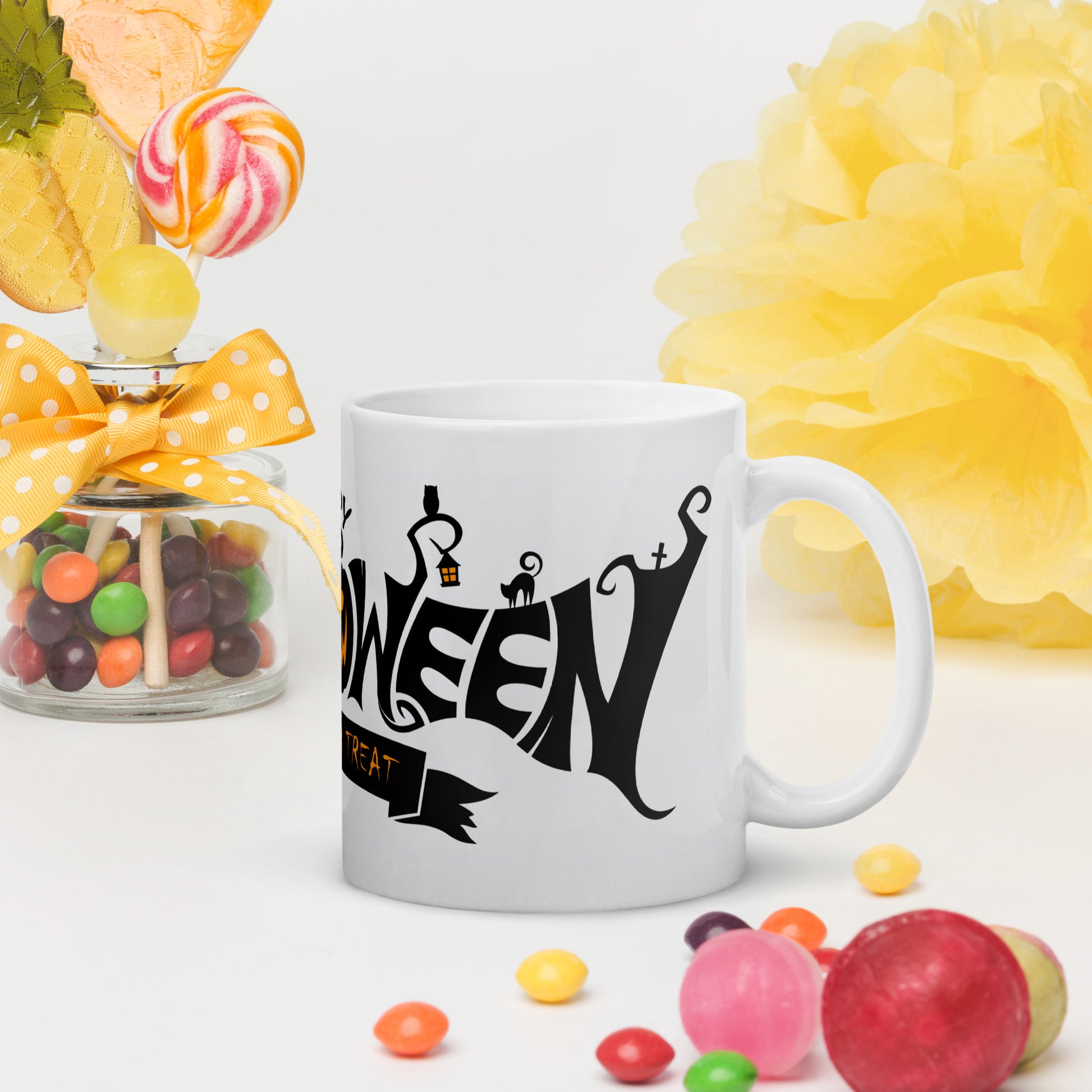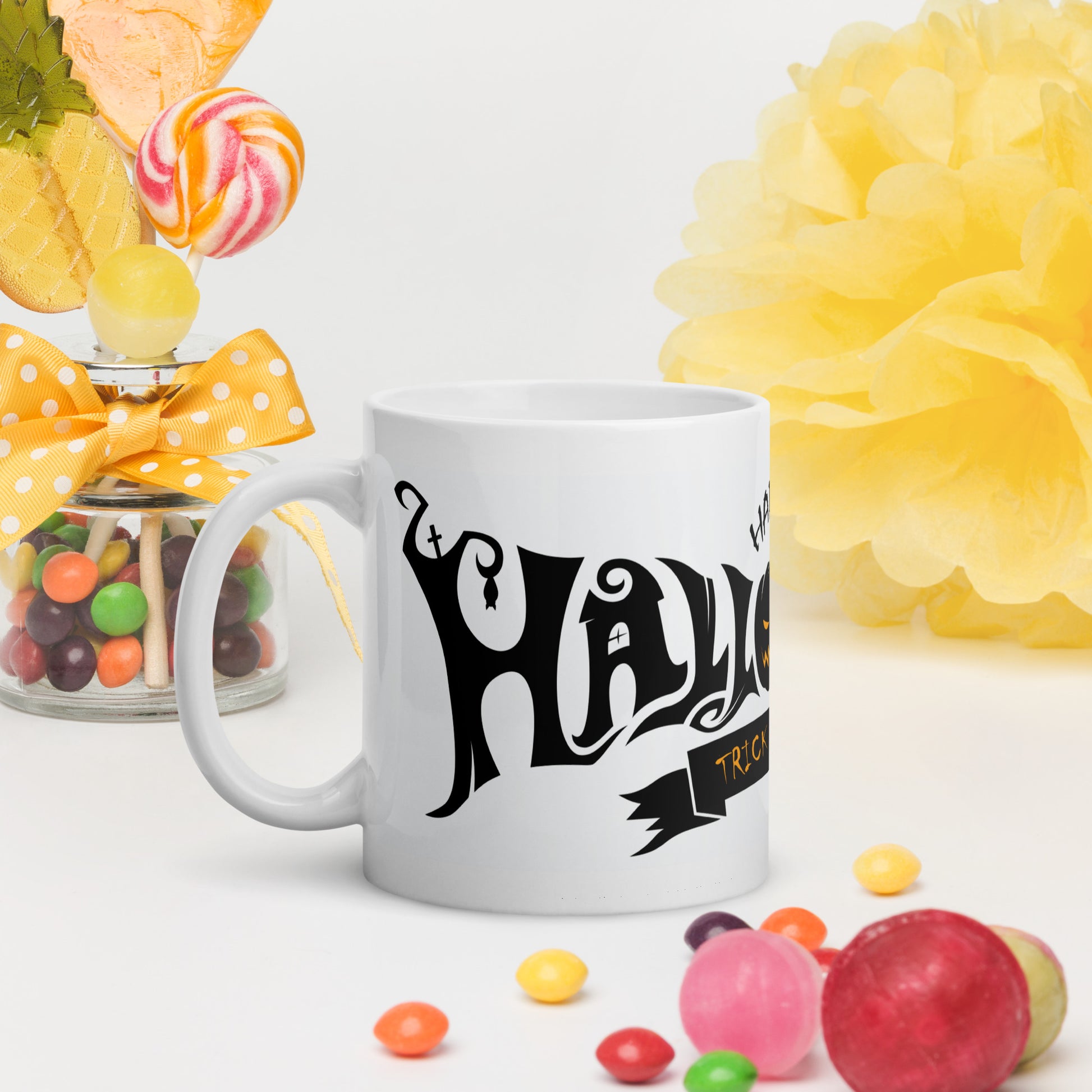 Get in the Halloween spirit with our "Happy Halloween" mug! This festive design features a classic Halloween color scheme and is perfect for sipping your favorite hot beverage during the spooky season. Whether you're getting ready for trick-or-treating or curling up with a scary movie, this mug will add some fun to your Halloween celebrations. It's sturdy and glossy with a vivid print that'll withstand the microwave and dishwasher.