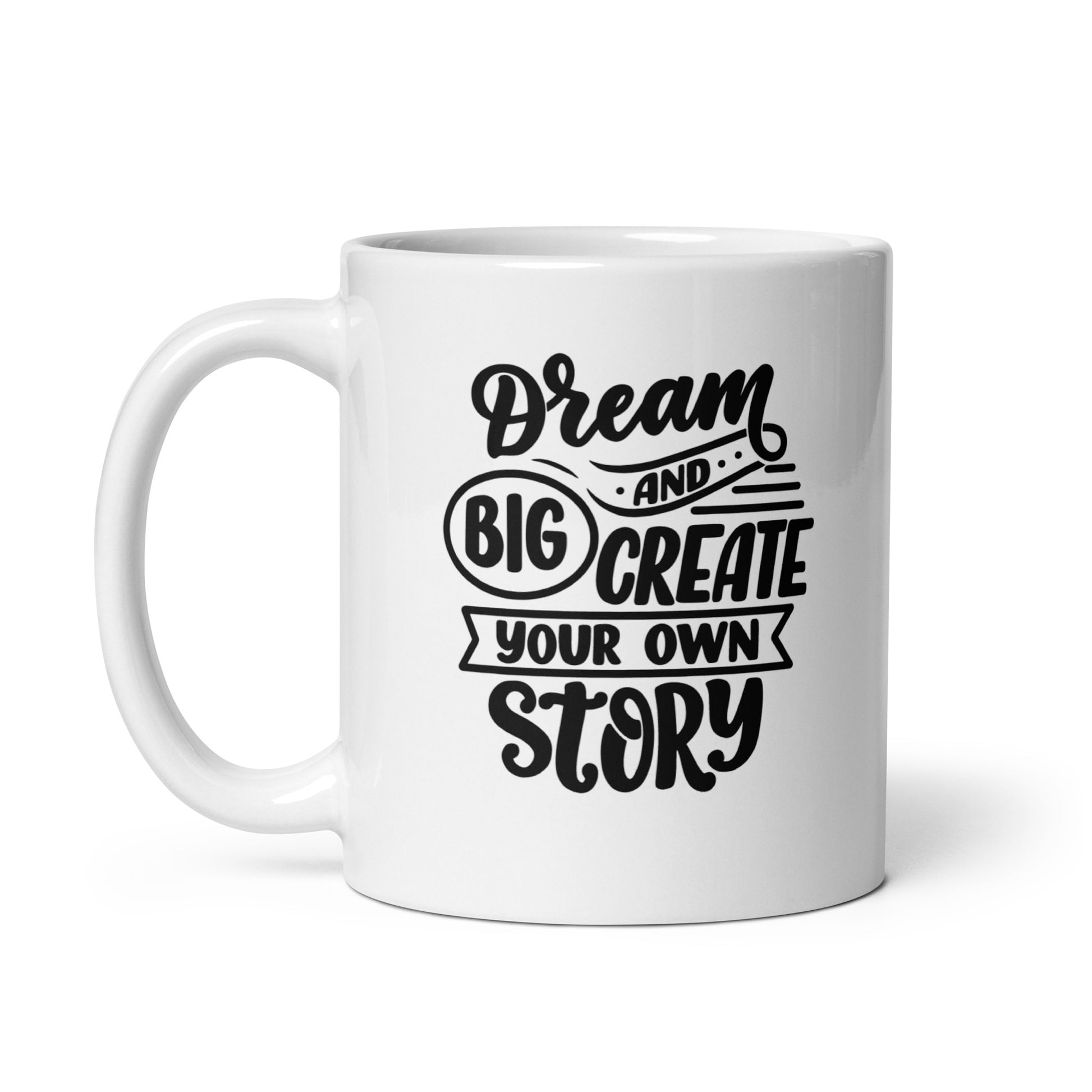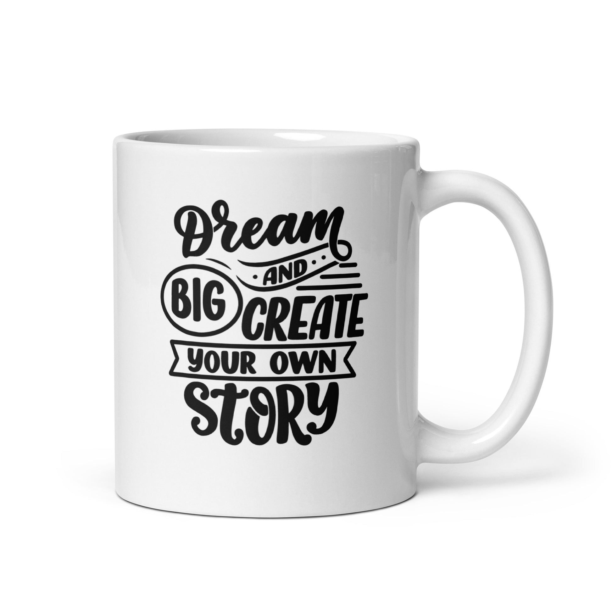 Our motivational mug features the powerful message "Dream Big and Create Your Own Story" to inspire and empower you on your journey of personal growth and achievement. Embrace the limitless possibilities that lie within your dreams and let them guide you towards creating a unique and fulfilling life story. This mug serves as a daily reminder to believe in yourself, set ambitious goals, and take bold actions to turn your dreams into reality. With its captivating design and motivational text, this mug sparks a sense of positivity and determination every time you sip your favorite beverage. Crafted with high-quality materials, it ensures durability and a comfortable grip, making it an ideal companion for your morning coffee or tea rituals. Let this motivational mug inspire you to dream big, take charge of your destiny, and create a story that reflects your true potential and passions. It's sturdy and glossy with a vivid print that'll withstand the microwave and dishwasher.