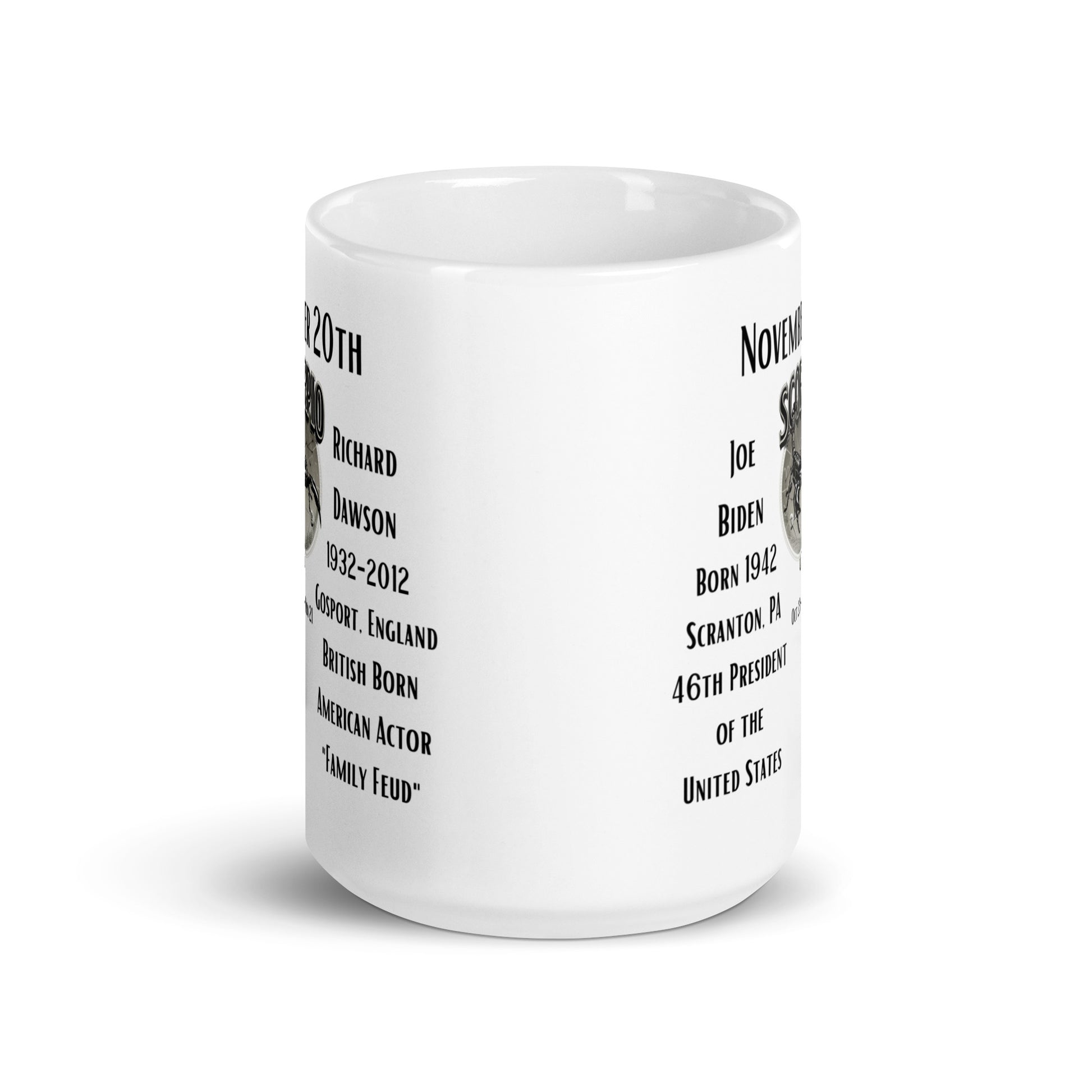 On This Day: Birthday Series - November 20th - (A) Joe Biden & Richard Dawson - White glossy mug