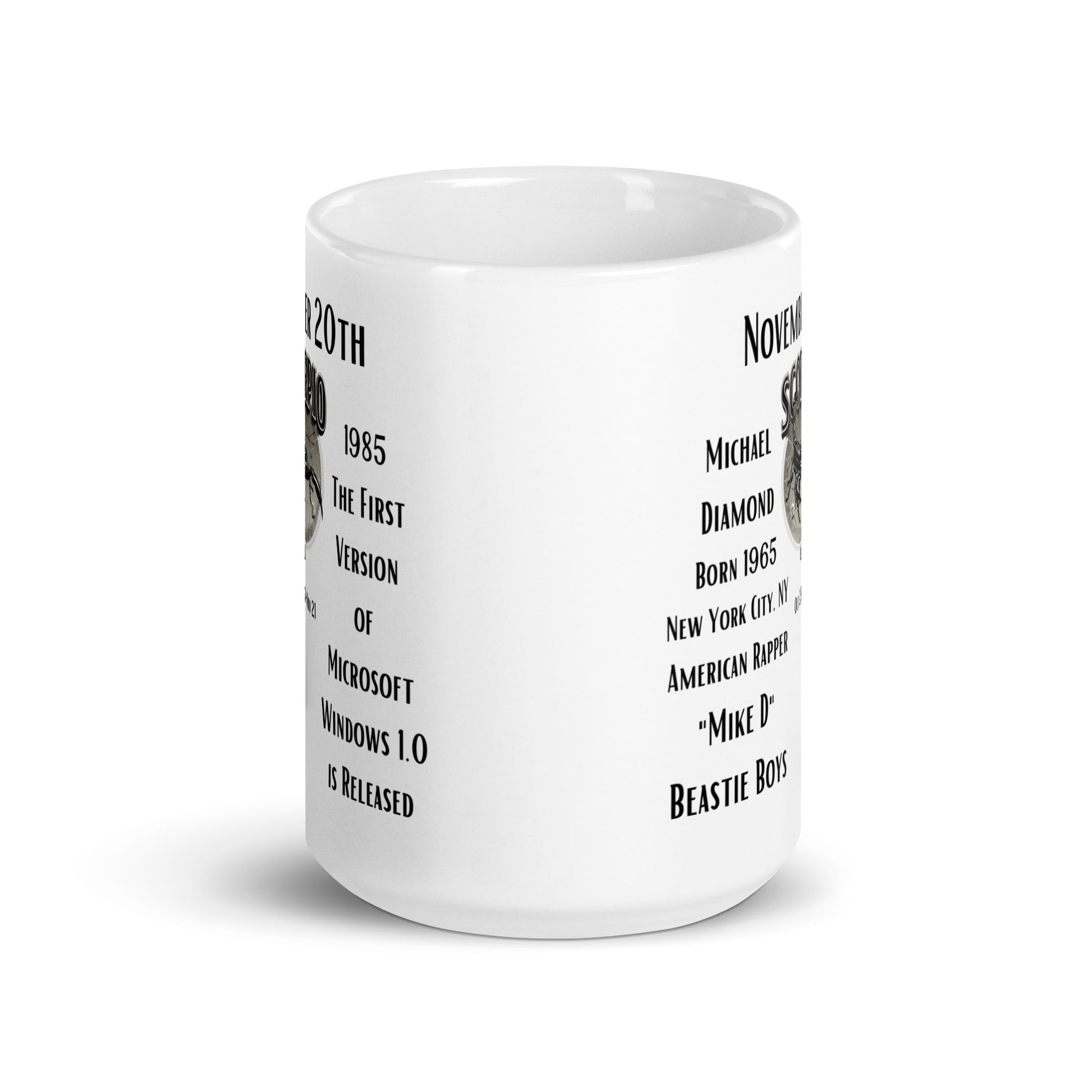 On This Day: Birthday Series - November 20th - (B) Mike D & Microsoft - White glossy mug