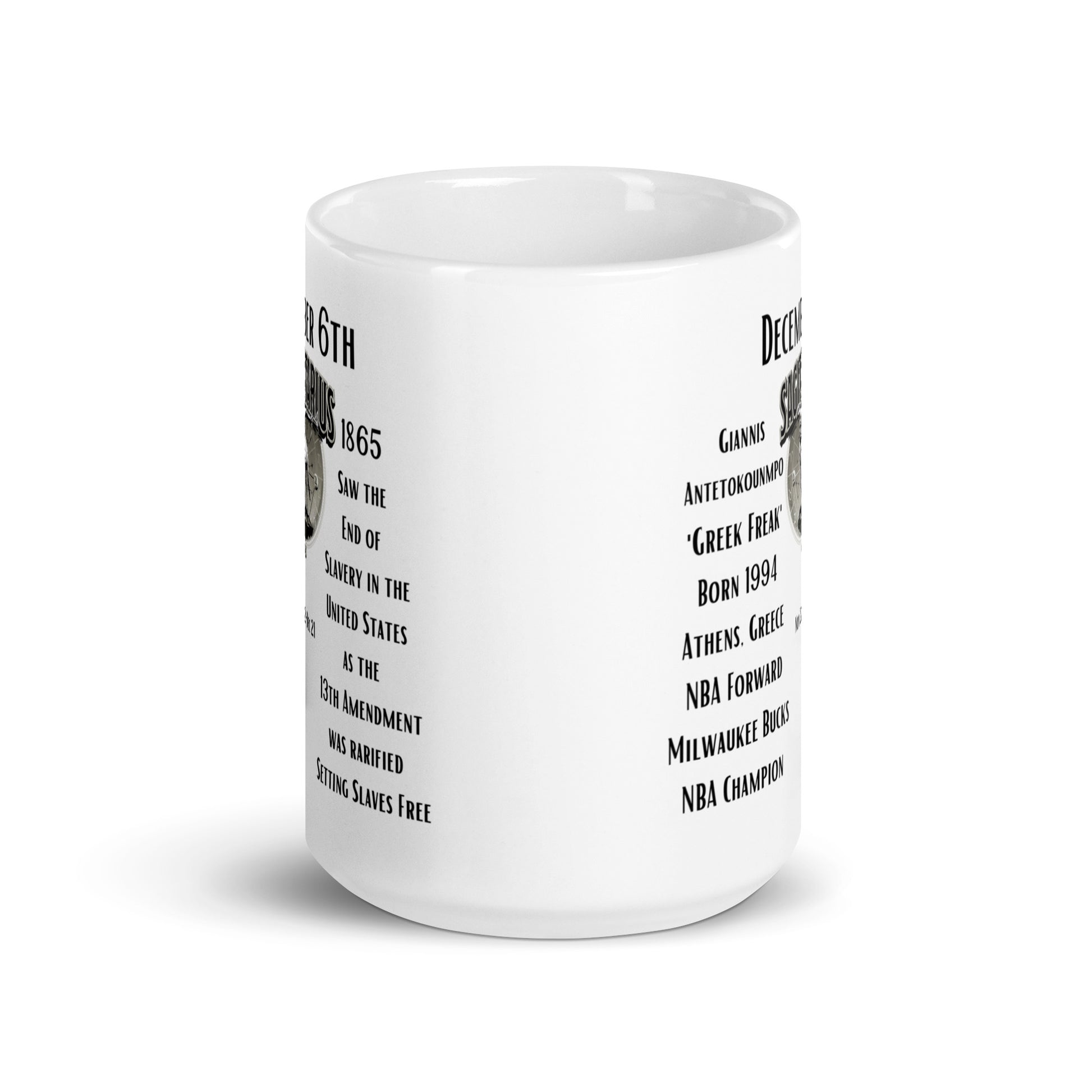 On This Day: Birthday Series - December 06th - (A) Giannis Antetokounmpo & The 13th Amendment - White glossy mug