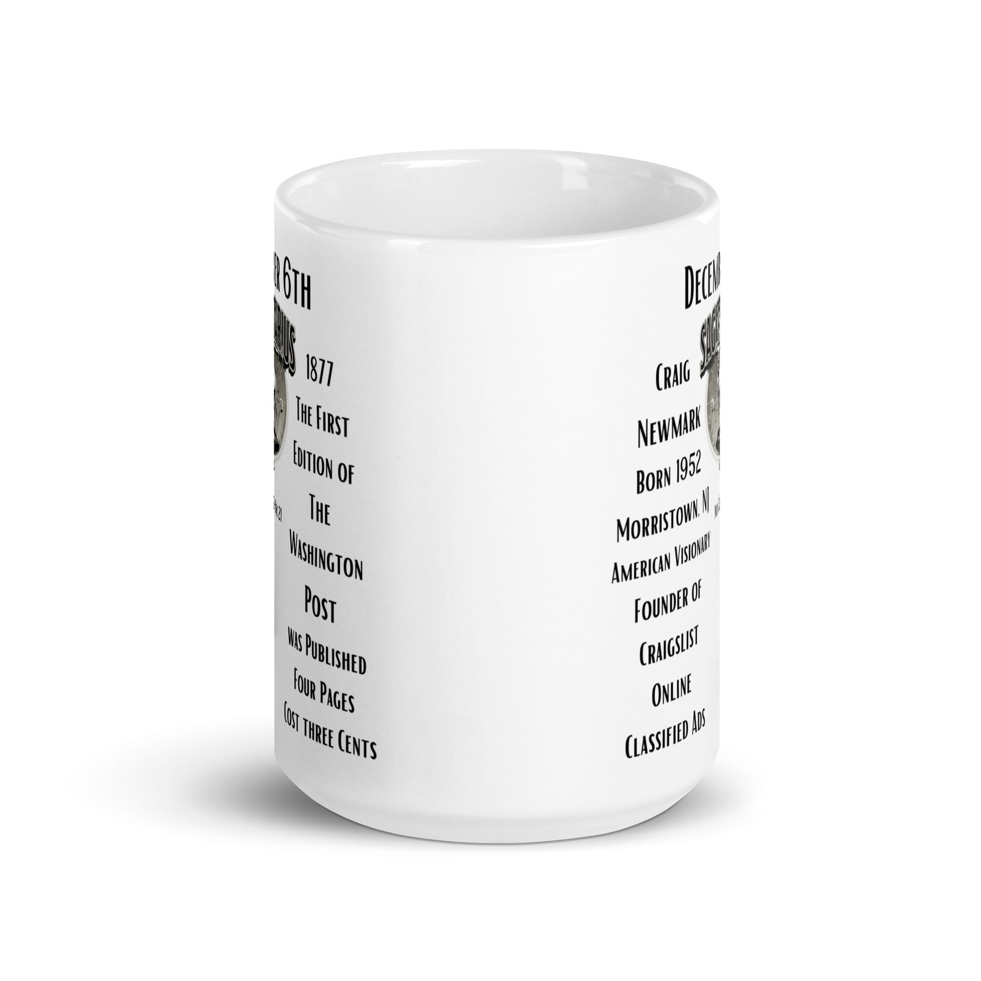 On This Day: Birthday Series - December 06th - (C) Craigslist & The Washington Post - White glossy mug