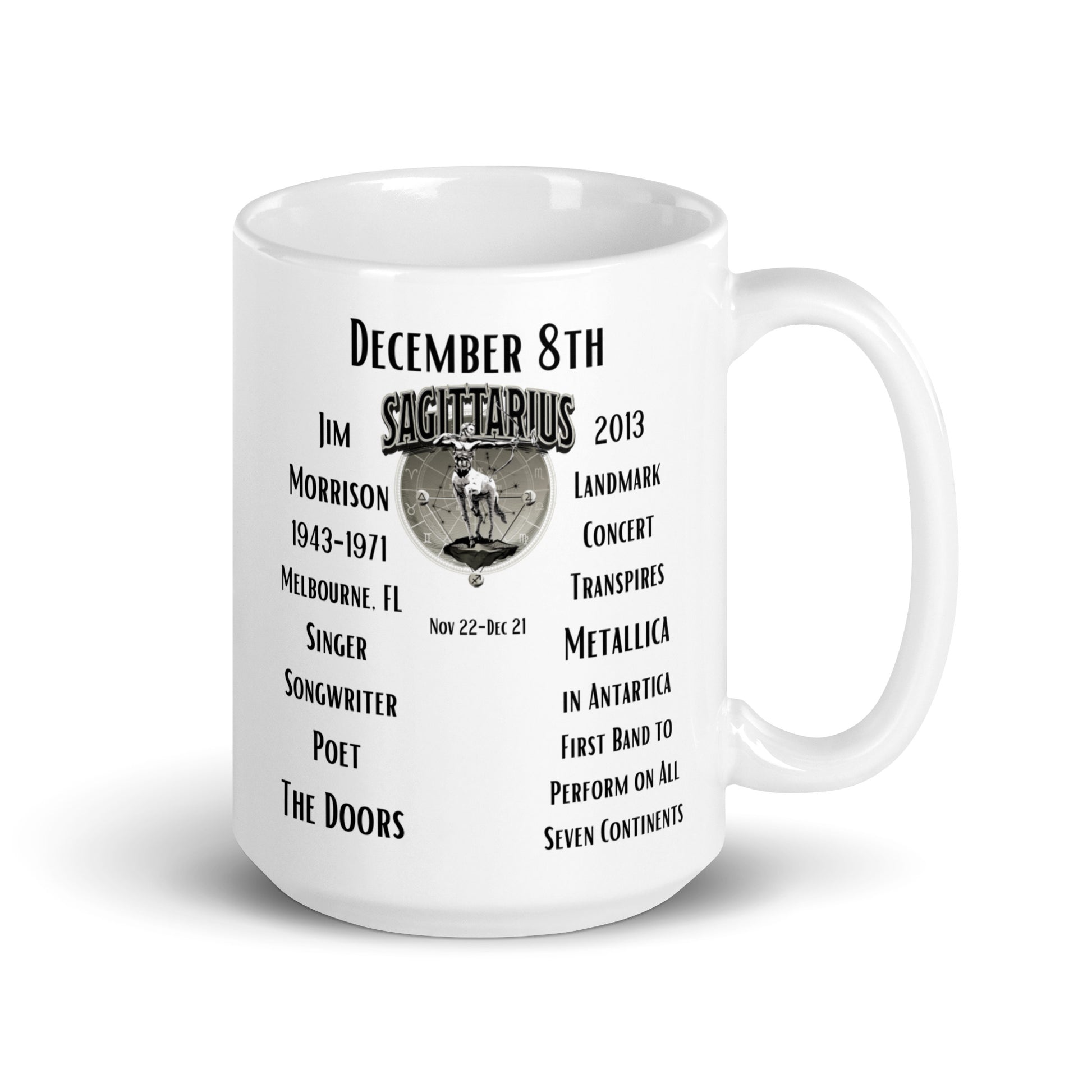 On This Day: Birthday Series - December 08th - (B) Jim Morrison & Metallica - White glossy mug