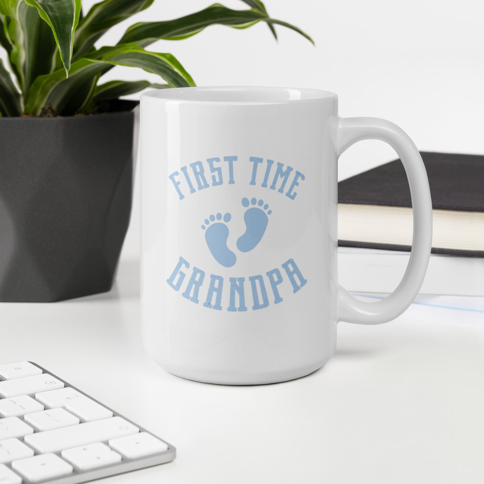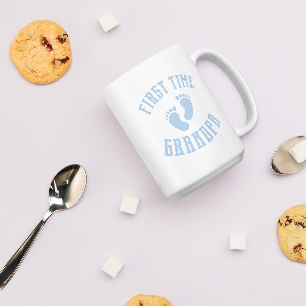 Grandad #01 "First Time Grandpa" (Blue) White glossy mug