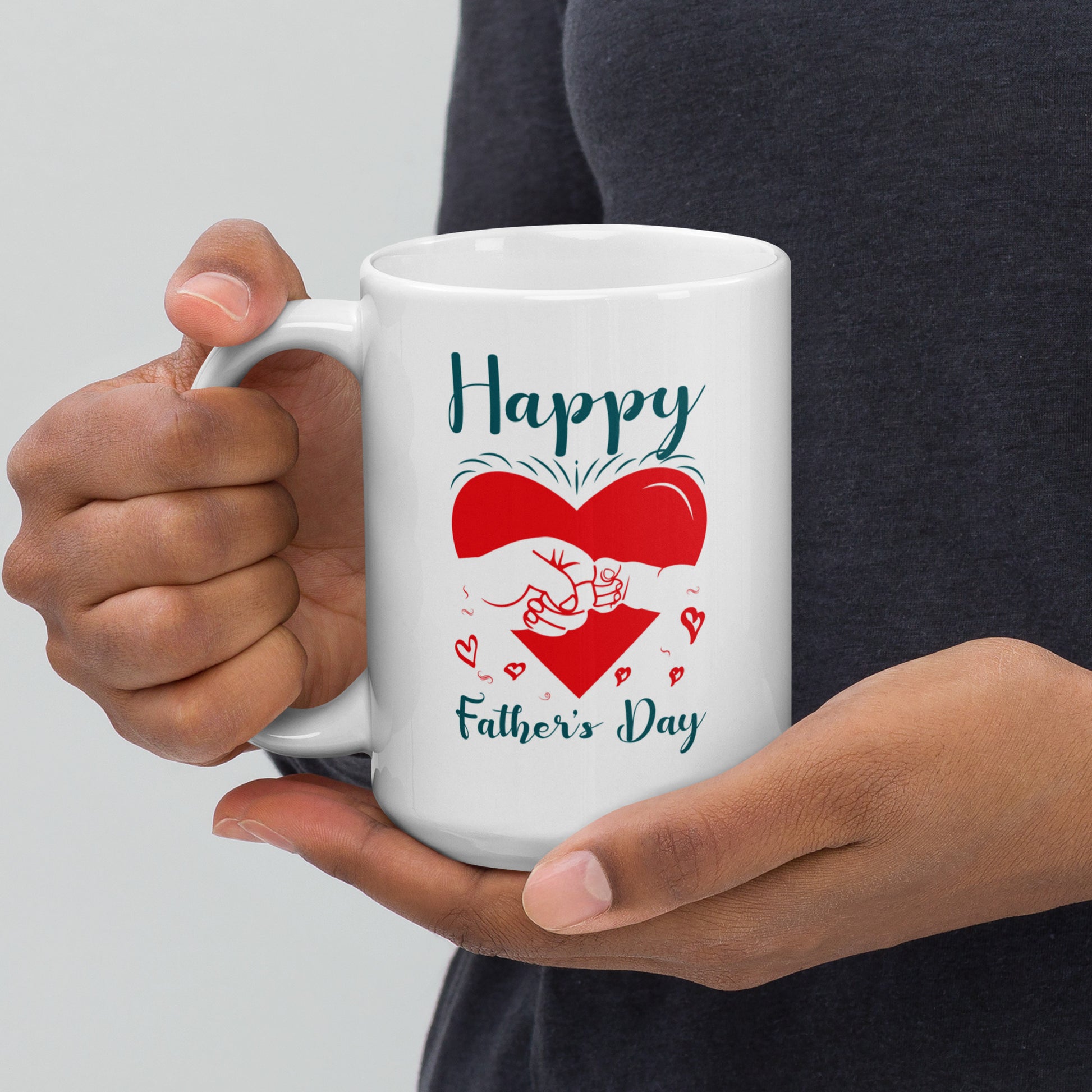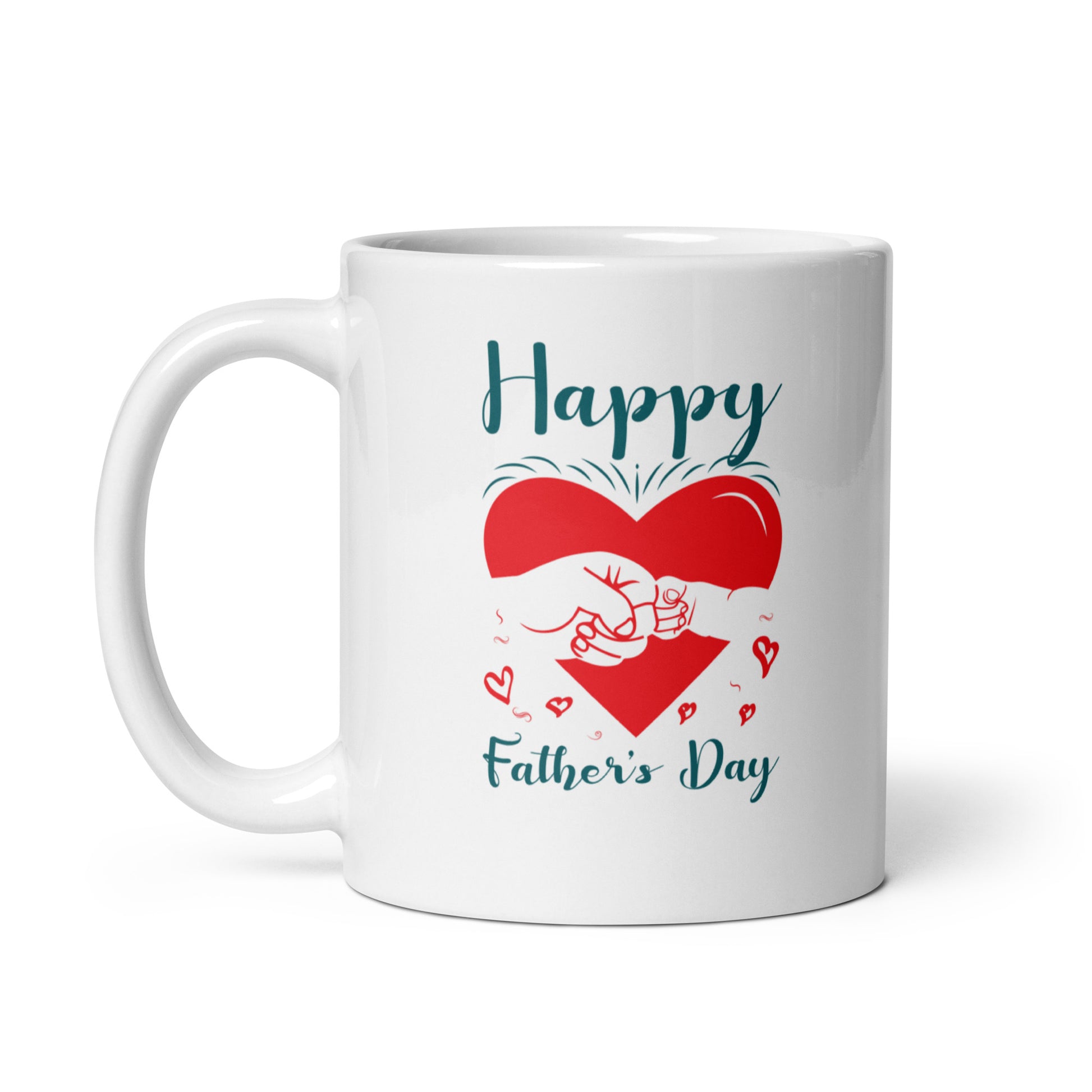 Celebrate the love and unity between father and child with our heartfelt "Happy Father's Day" mug. The design features a big heart with a father and child fist bump in the center, symbolizing the strong bond and affection shared between them. This mug is a beautiful way to express your appreciation for your dad and the special role he plays in your life. It's a meaningful and memorable gift that captures the joy and happiness of the Father's Day celebration. Let your dad know how much he means to you with this sentimental mug that he can cherish every time he enjoys his favorite beverage. It's sturdy and glossy with a vivid print that'll withstand the microwave and dishwasher.