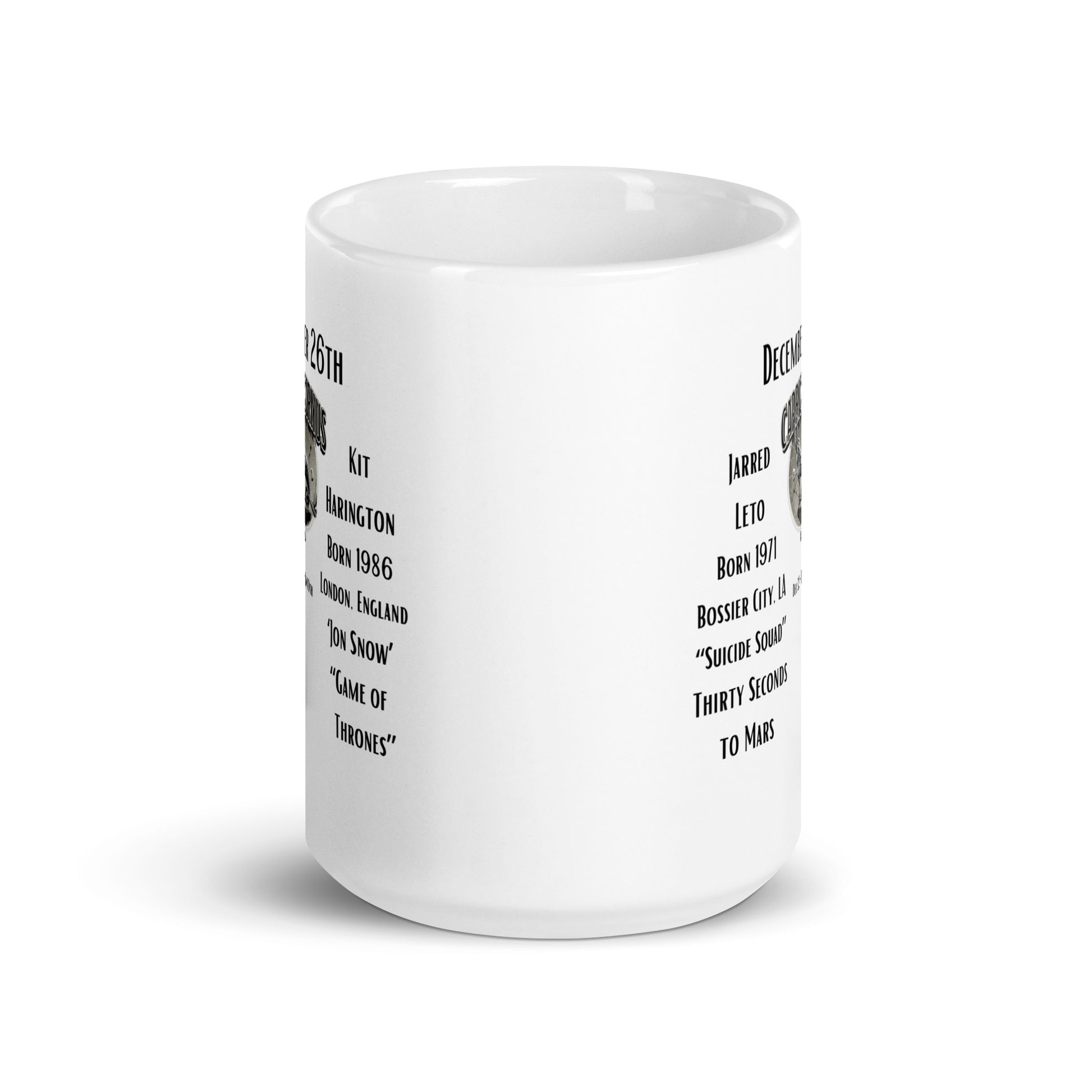 On This Day: Birthday Series - December 26th - (C) Jared Leto & Kit Harrington - White glossy mug
