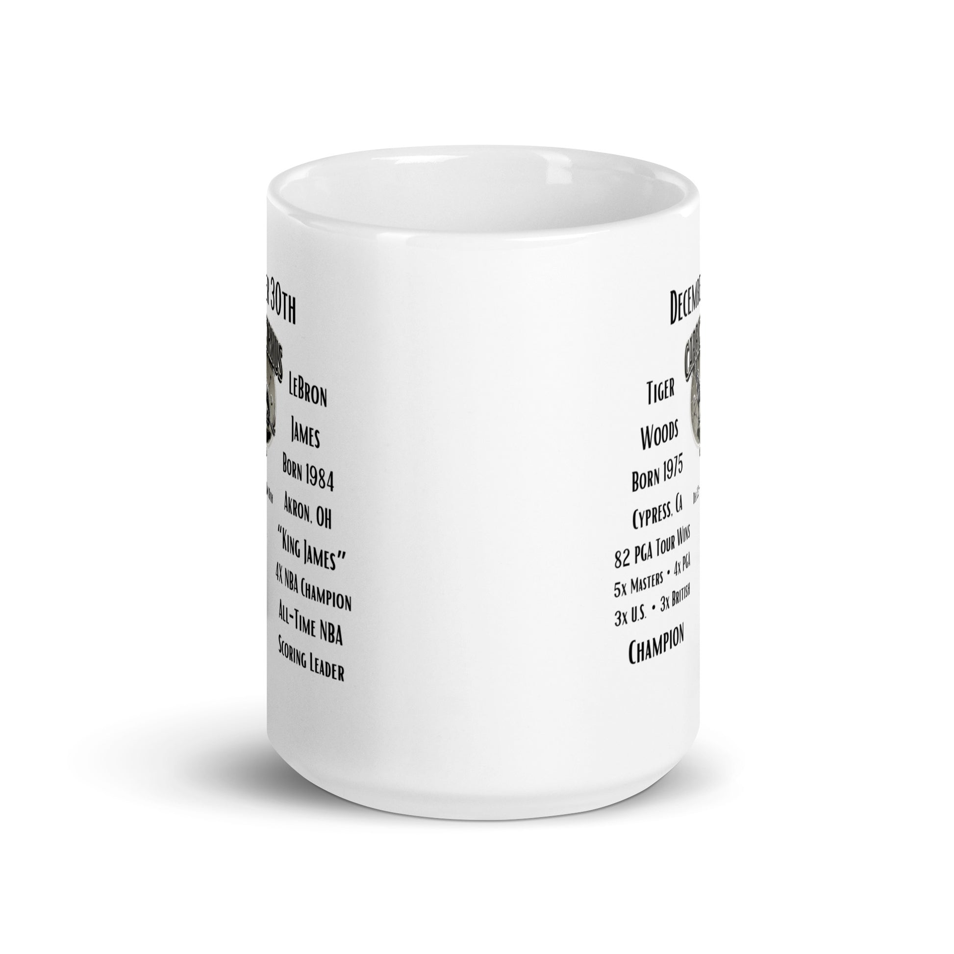 On This Day: Birthday Series - December 30th - (A) Tiger Woods & LaBron James - White glossy mug