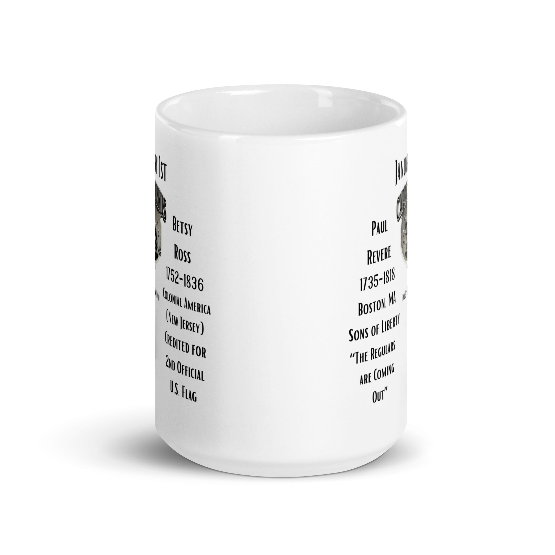 On This Day: Birthday Series - January 01st - (A) Paul Revere & Betsy Ross - White glossy mug