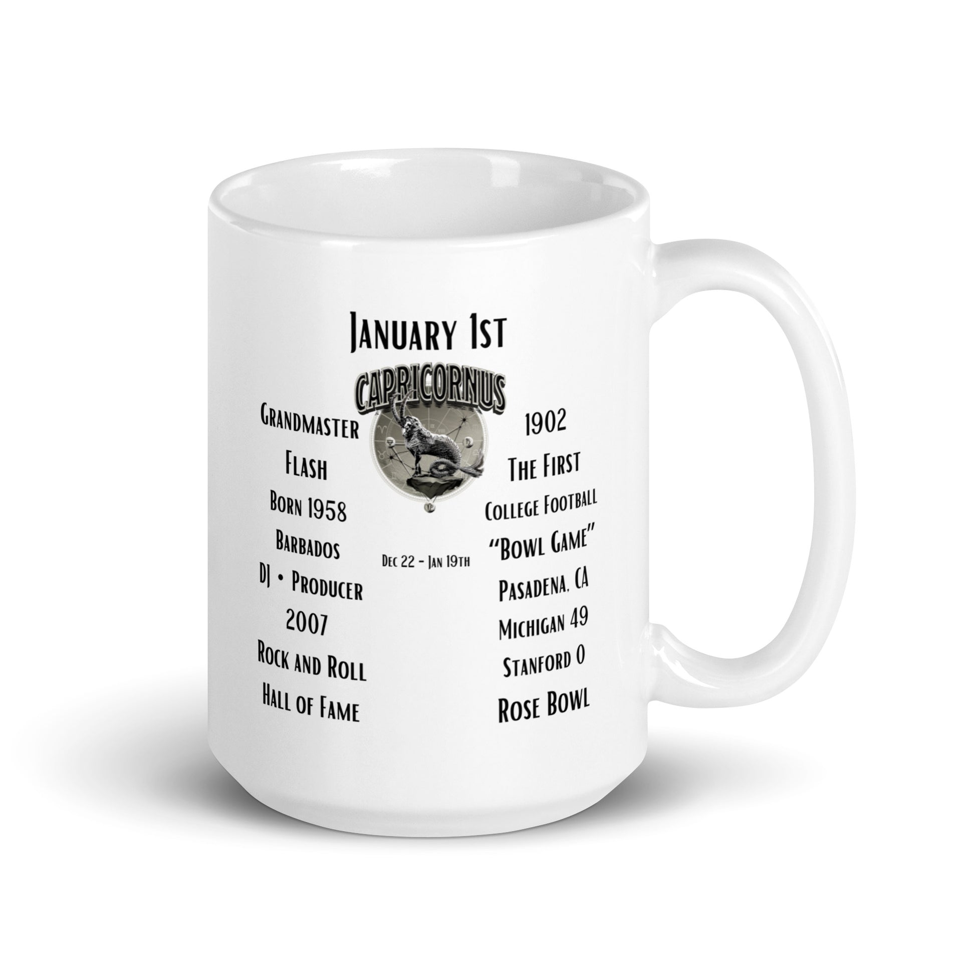 Kick-off the New Year with a sip of history through POD Products 4U's "On This Day: Birthday Series"! Celebrate January 1st, a day when groundbreaking hip-hop artist Grandmaster Flash was born in 1958, and the first-ever college football "Bowl Game" was played in Pasadena in 1902. Representing the spirited Capricorn season (Dec 22nd-Jan 19th), this mug is a blend of musical innovation and sporting history, making it a unique gift for every enthusiast of diversity and accomplishment!