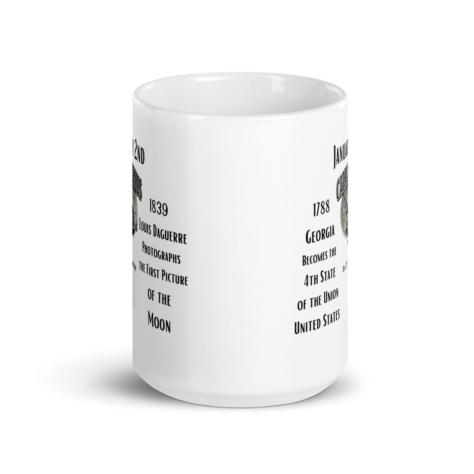 Celebrate the dual historicity of January 2nd with POD Products 4U’s "On This Day: Birthday Series" mug! Traverse back to 1788, when Georgia, with its vibrant culture and lush landscapes, was admitted as the 4th state of the union. Journey further to witness the brilliance of 1839 when Louis Daguerre captured the moon's ethereal beauty in the first-ever photograph. Imbibing the essence of the Capricorn season (Dec 22nd-Jan 19th), this mug is more than a drinkware—it’s a blend of history and innovation, a tribute to statehood and astronomical milestones!