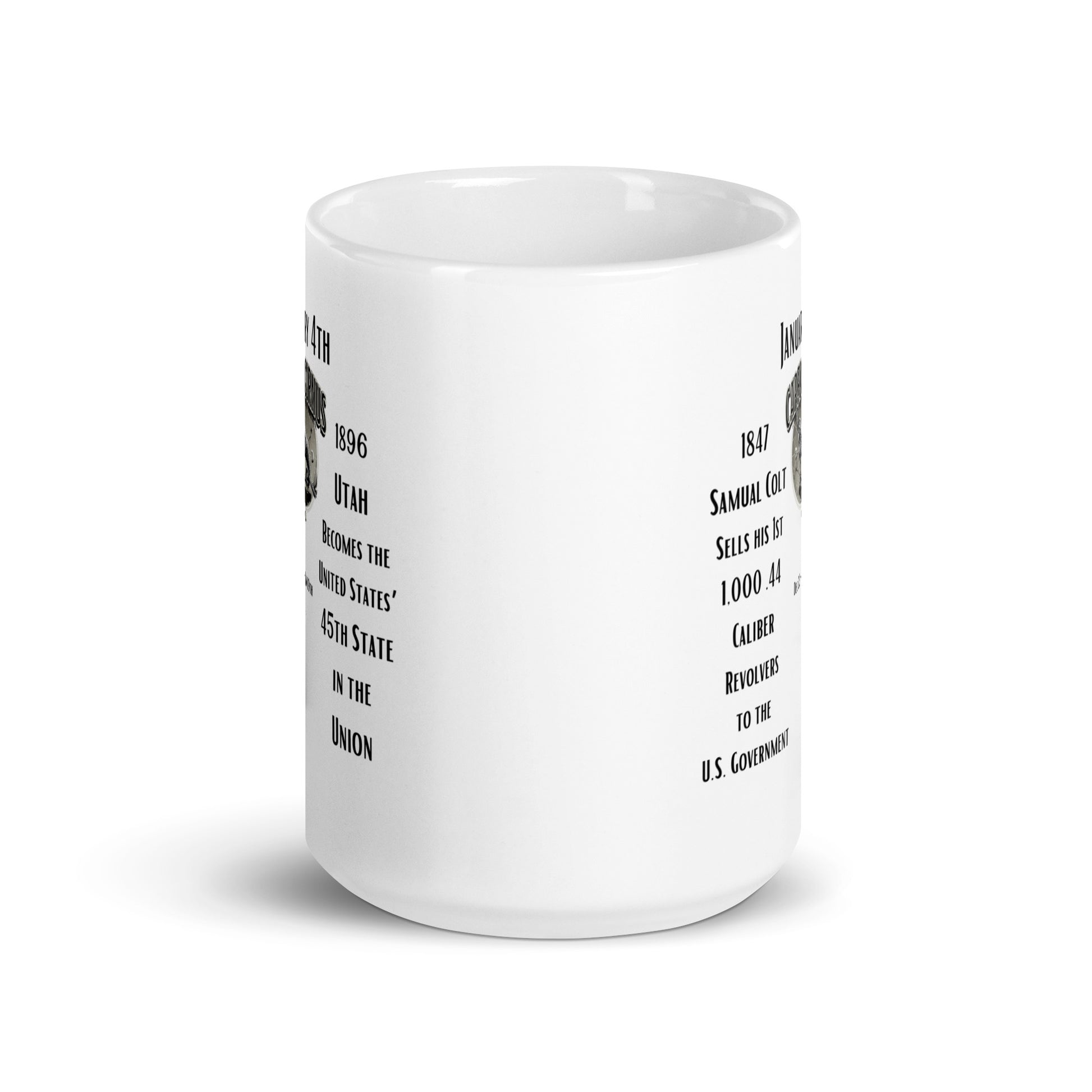 On This Day: Birthday Series - January 04th - (B) Samual Colt & Utah - White glossy mug