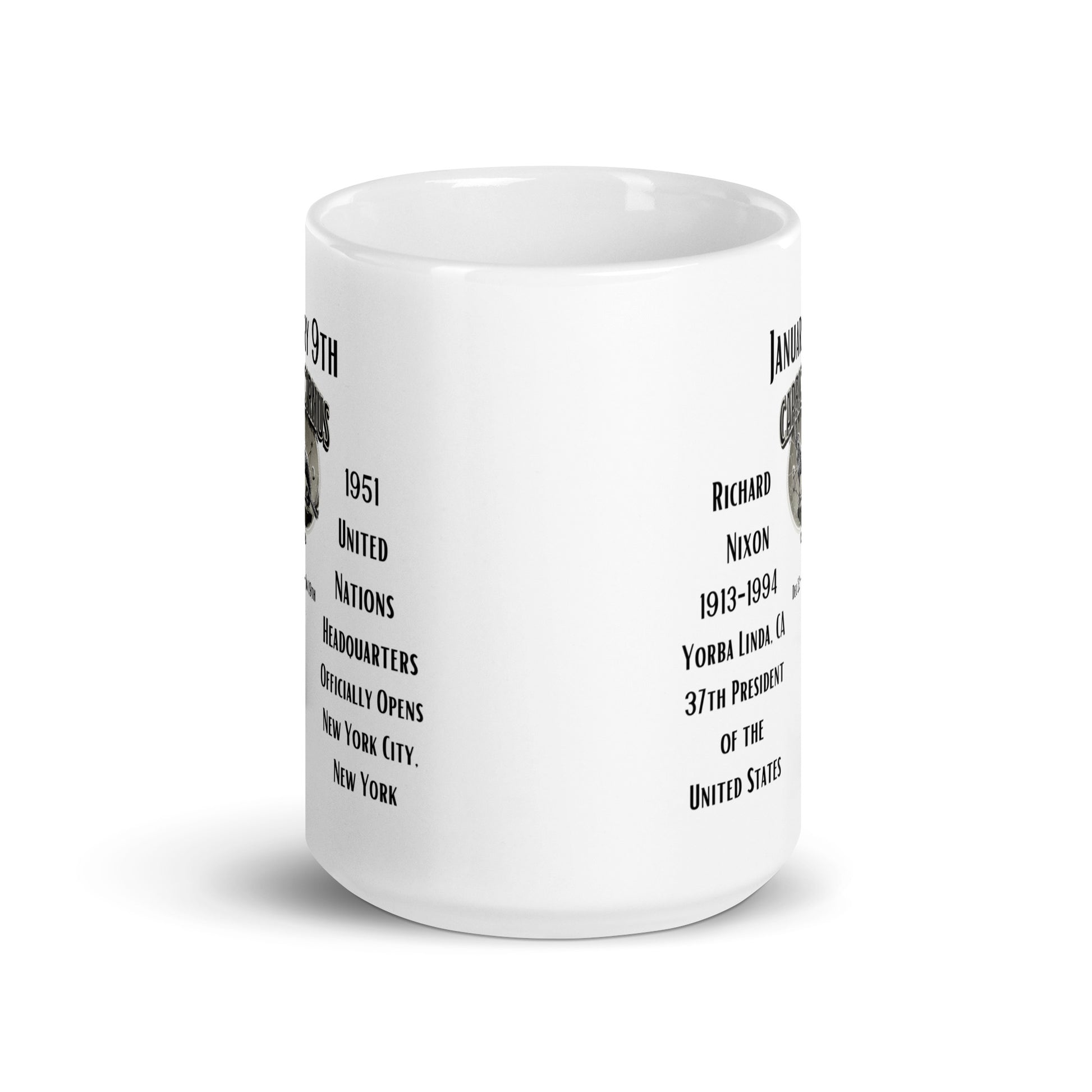 On This Day: Birthday Series - January 09th - (B) Richard Nixon & The United Nations - White glossy mug