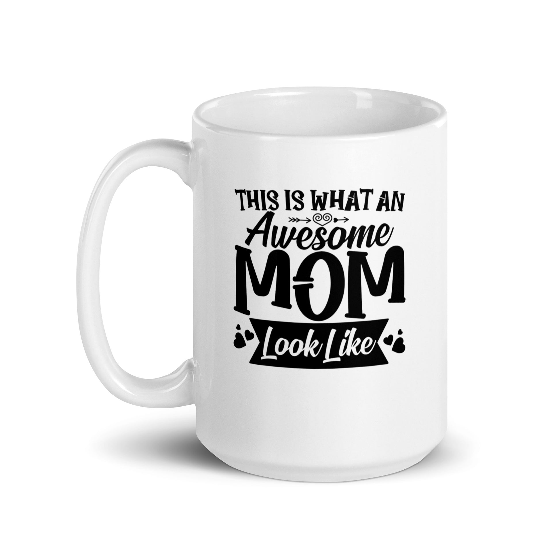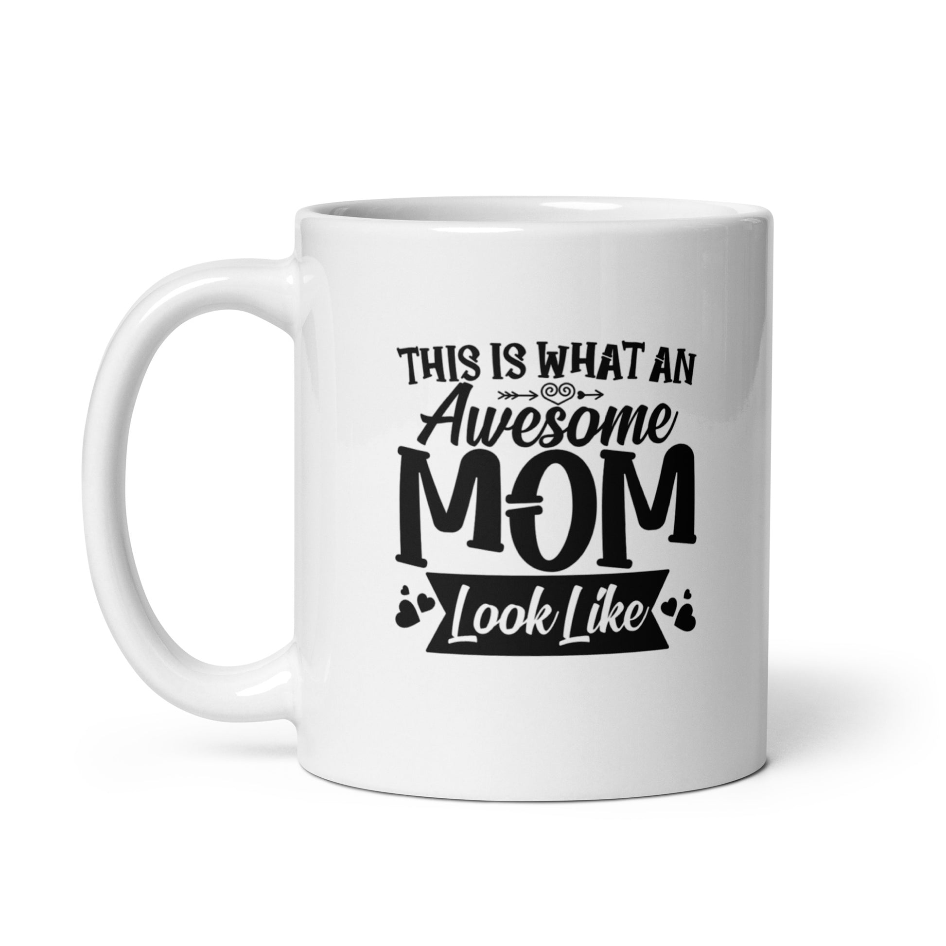 Mom #03 "THIS IS WHAT AN Awesome MOM Look Like" White glossy mug