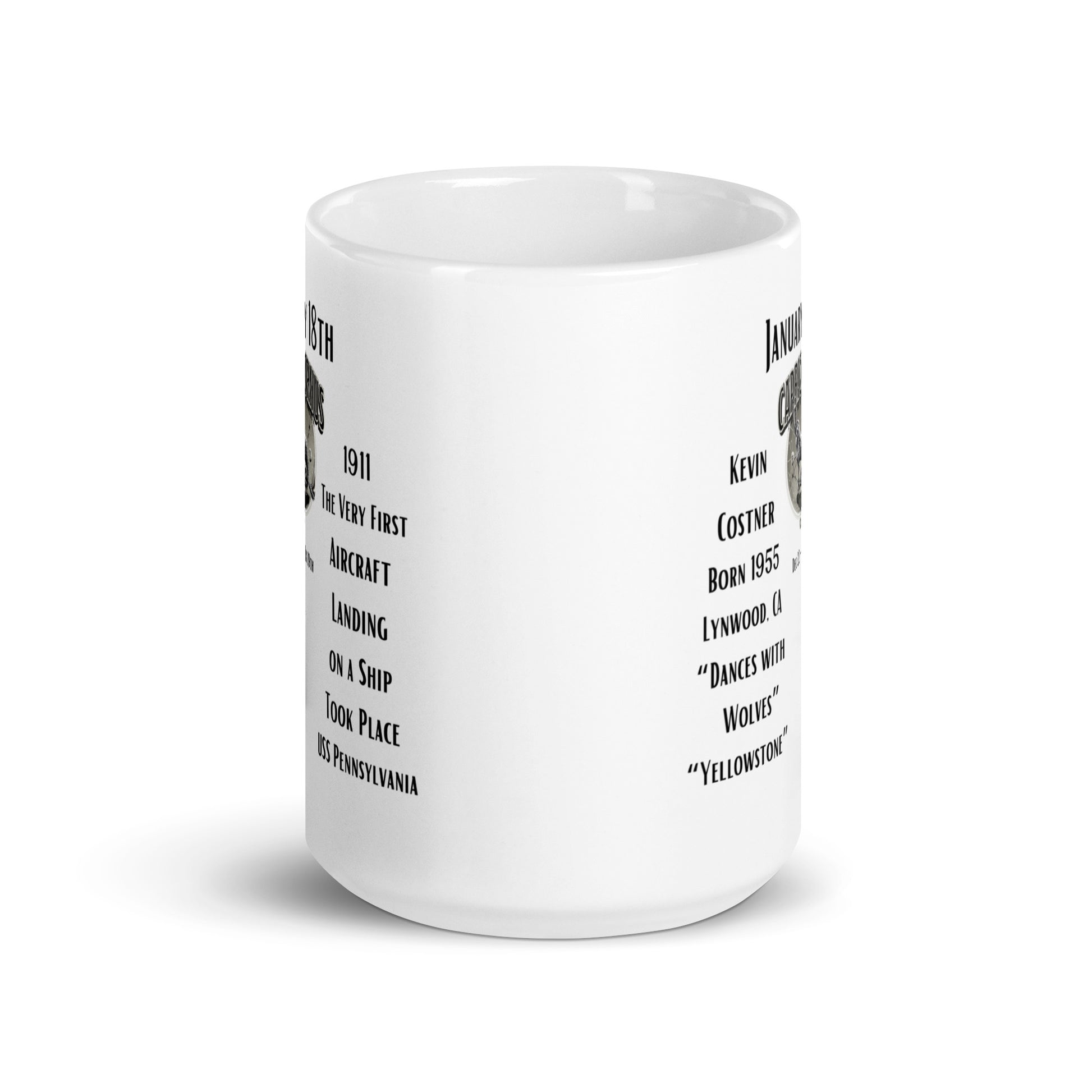 On This Day: Birthday Series - January 18th - (A) Kevin Costner - USS Pennsylvania - White glossy mug