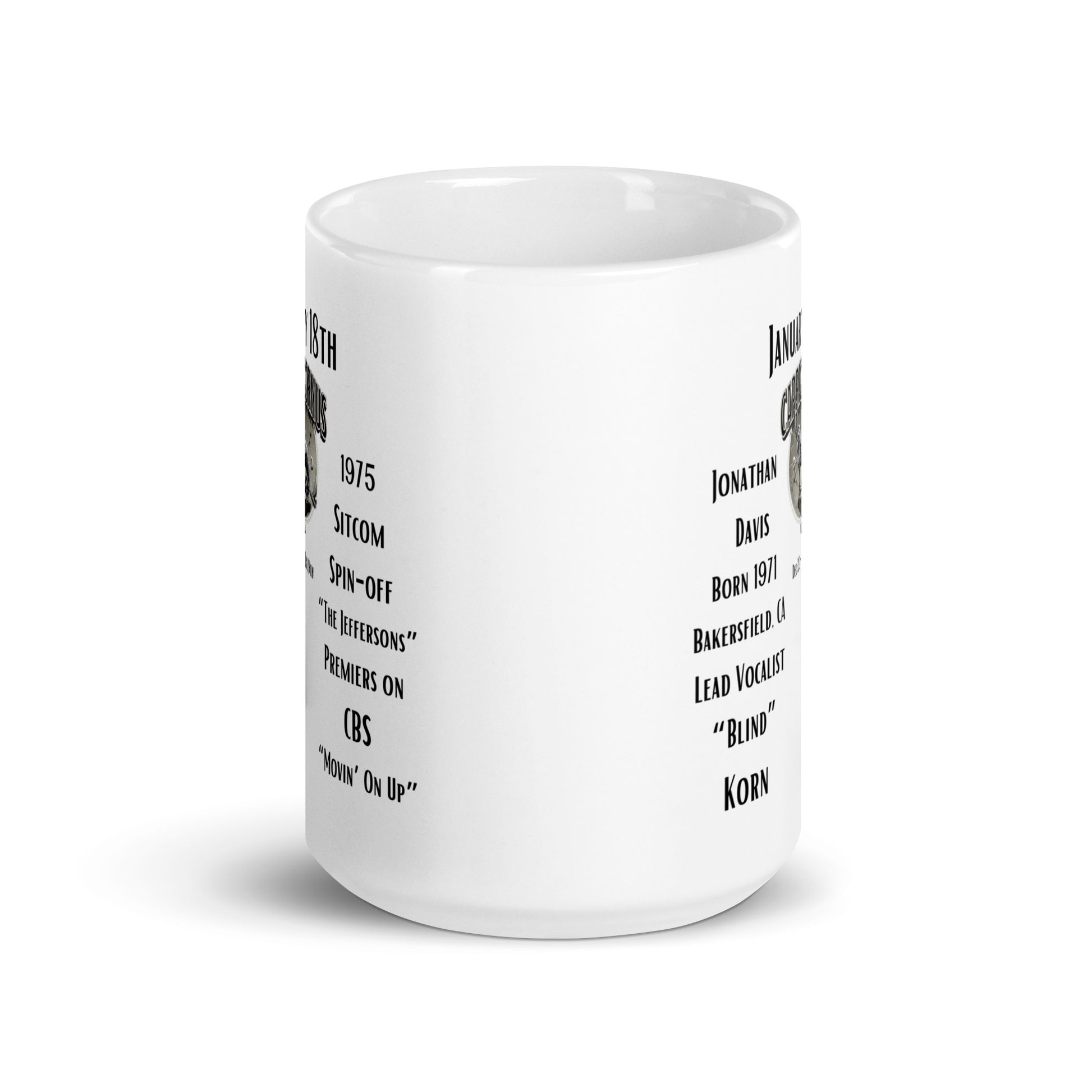 On This Day: Birthday Series - January 18th - (B) Korn & "The Jeffersons" - White glossy mug