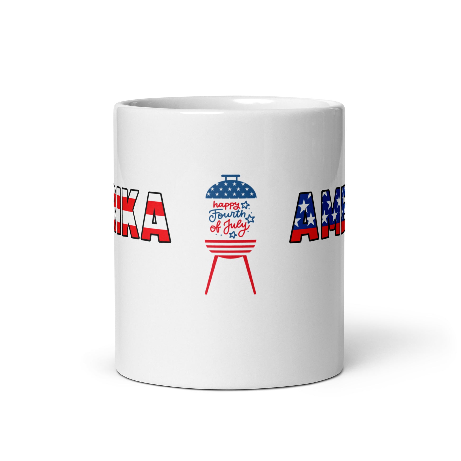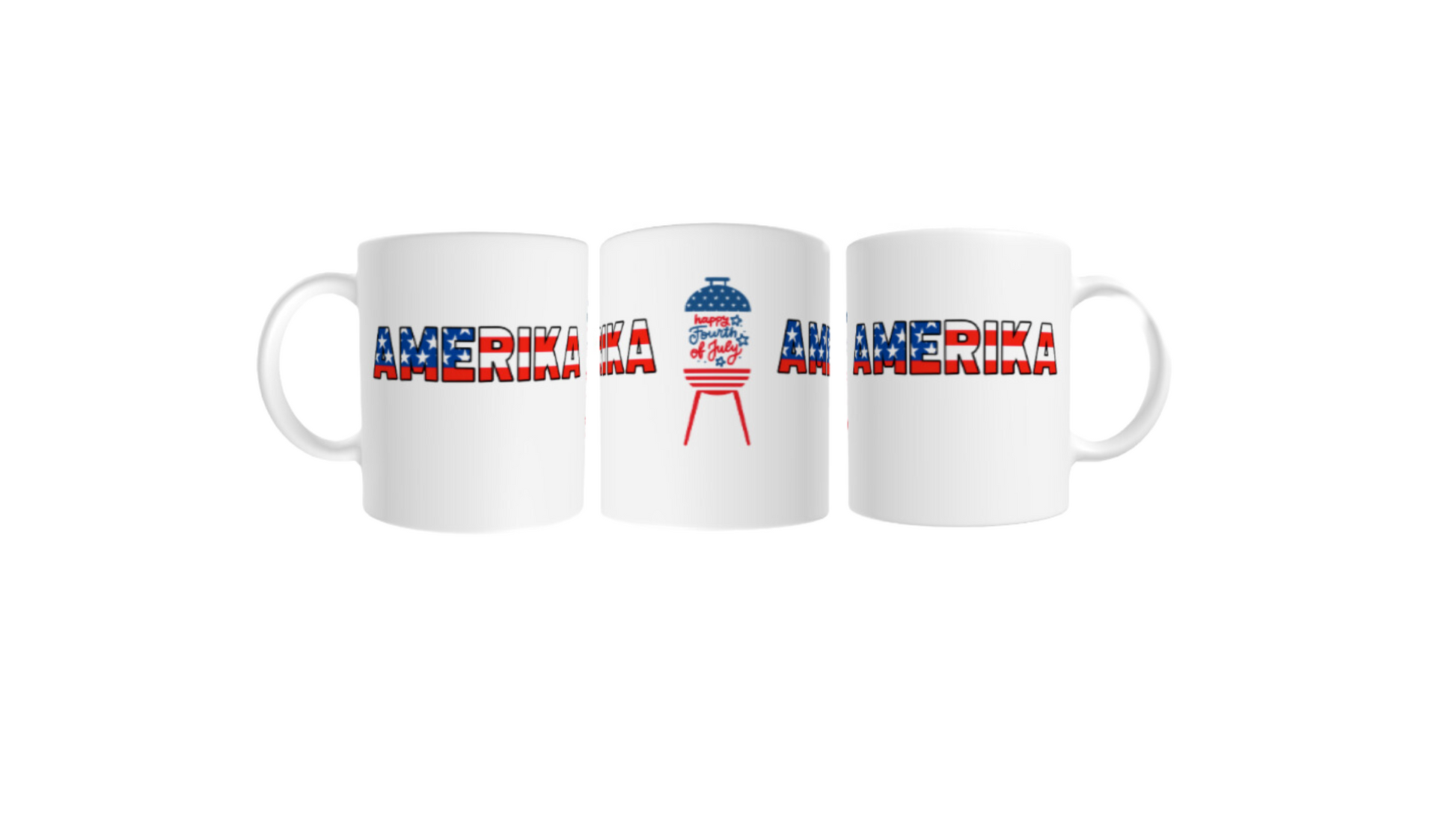 Celebrate the 4th of July in style with this Amerika mug. Featuring the bold text "AMERIKA" with an outback BBQ image dead center, this mug captures the essence of American pride and summer festivities. Whether you're grilling up some delicious burgers, enjoying a backyard BBQ, or watching fireworks light up the night sky, this mug is the perfect companion for your 4th of July celebrations. Made with high-quality materials, it ensures durability and long-lasting use. Raise a toast to freedom, unity, and the spirit of Independence Day with this patriotic mug. Let the red, white, and blue colors ignite your pride for this great nation as you sip your favorite beverage. Embrace the festive vibes and make a statement with this Amerika 4th of July mug. It's sturdy and glossy with a vivid print that'll withstand the microwave and dishwasher.