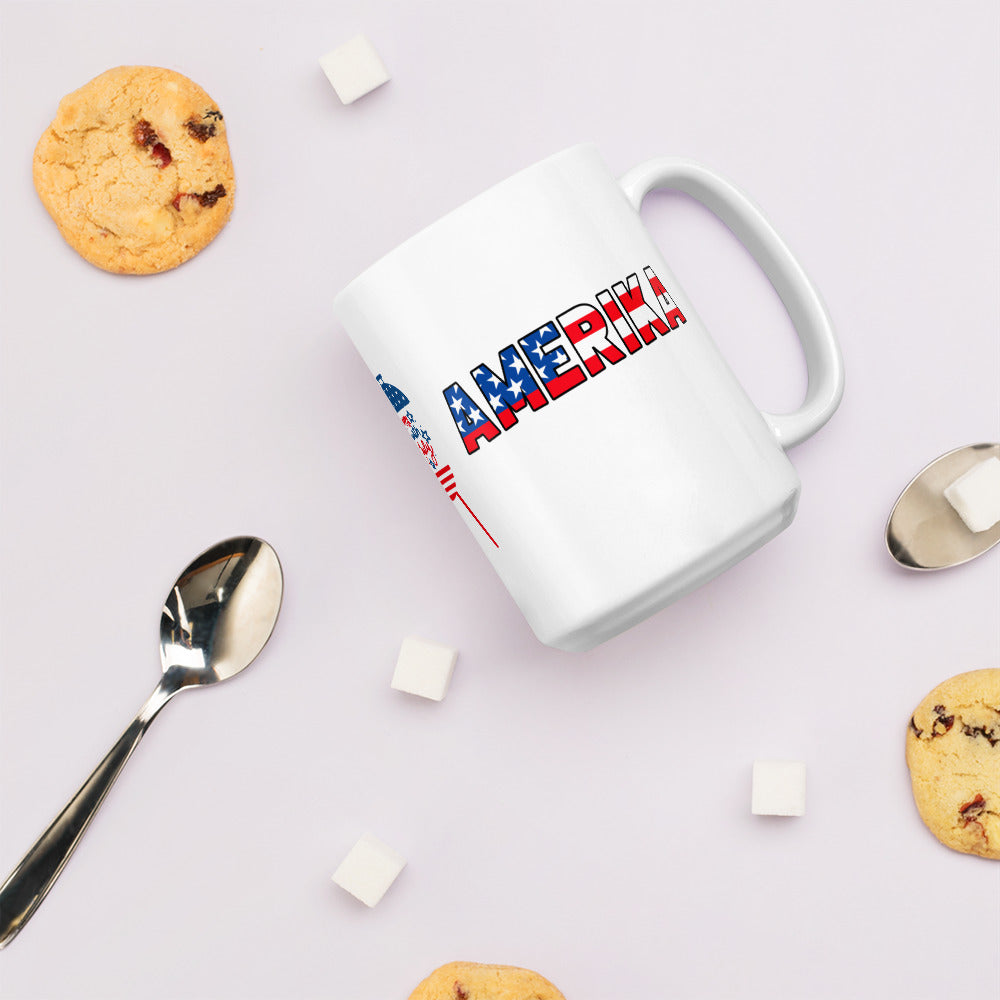 4th of July #11 "AMERIKA" Full Wrap White glossy mug