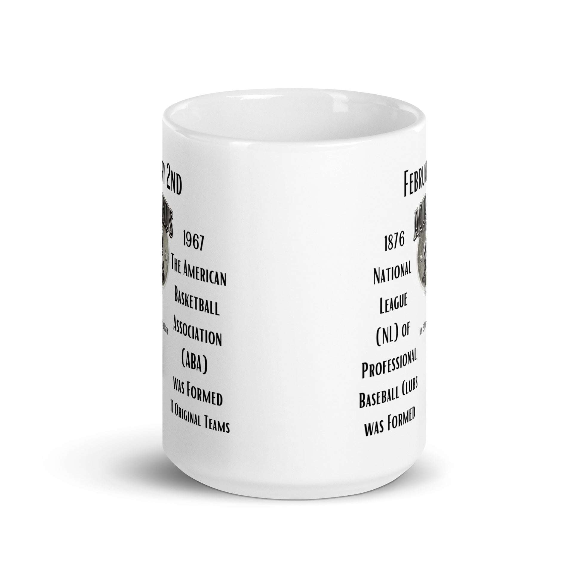Step into the realm of sports history with our "On This Day: Birthday Series" mug for February 2nd. This day marks a pivotal moment in 1876 with the formation of the National League of Professional Baseball Players, a cornerstone in America's beloved pastime. It also commemorates the establishment of the American Basketball Association in 1967, an organization that revolutionized the game of basketball. Celebrate these monumental strides in the sports world with every sip, under the innovative spirit of Aquarius.