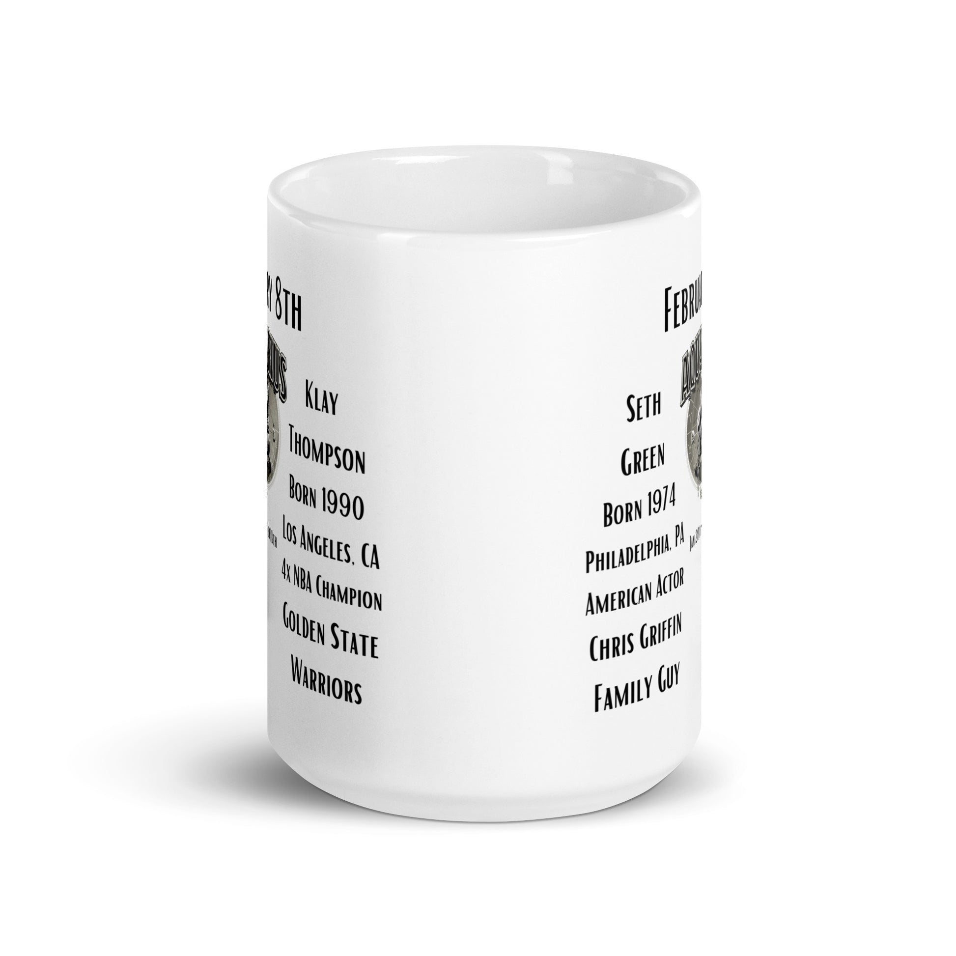 Embrace the spirit of creativity and excellence with our "On This Day: Birthday Series" mug for February 8th. Raise your cup to Seth Green, the versatile actor and producer born in 1974, known for his comedic flair and voice talents in popular shows like "Family Guy." Also, celebrate the birthday of Klay Thompson, born in 1990, a four-time NBA champion and one of the greatest shooters in basketball history. This mug is a perfect tribute to a day that marks the birthdays of two distinct talents, each masters in their respective fields of entertainment and sports.