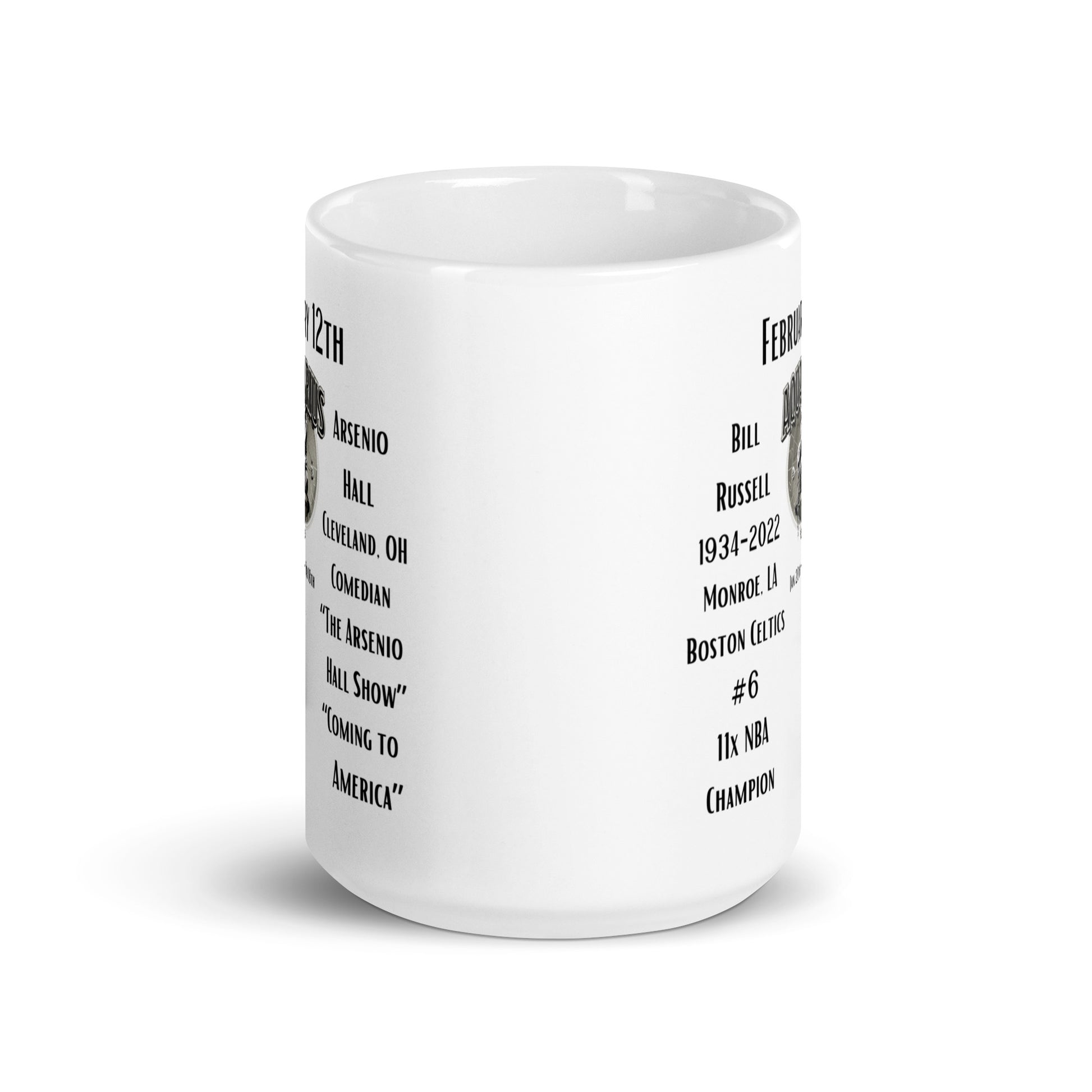Embrace the spirit of February 12th with our exclusive "On This Day: Birthday Series" mug. Celebrate the birth of basketball legend Bill Russell, born in 1934, a five-time NBA MVP and twelve-time All-Star, known for his incredible defense and championship mindset. Also born on this day in 1956, comedian and actor Arsenio Hall, famous for his late-night talk show "The Arsenio Hall Show." These two icons represent excellence in sports and entertainment, making your coffee time a tribute to their remarkable achievements.