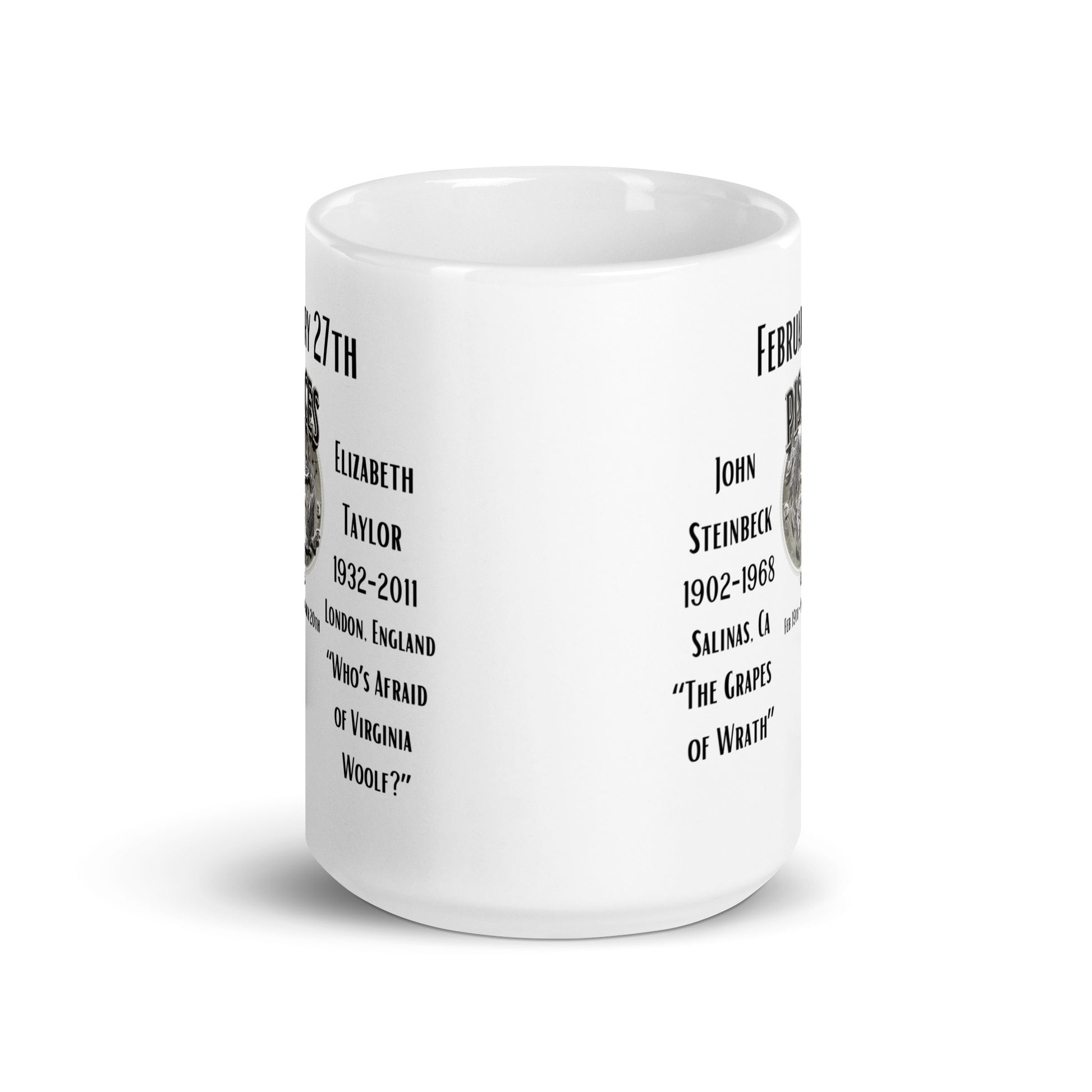 On This Day: Birthday Series - February 27th - (A) John Steinbeck & Elizabeth Taylor - White glossy mug