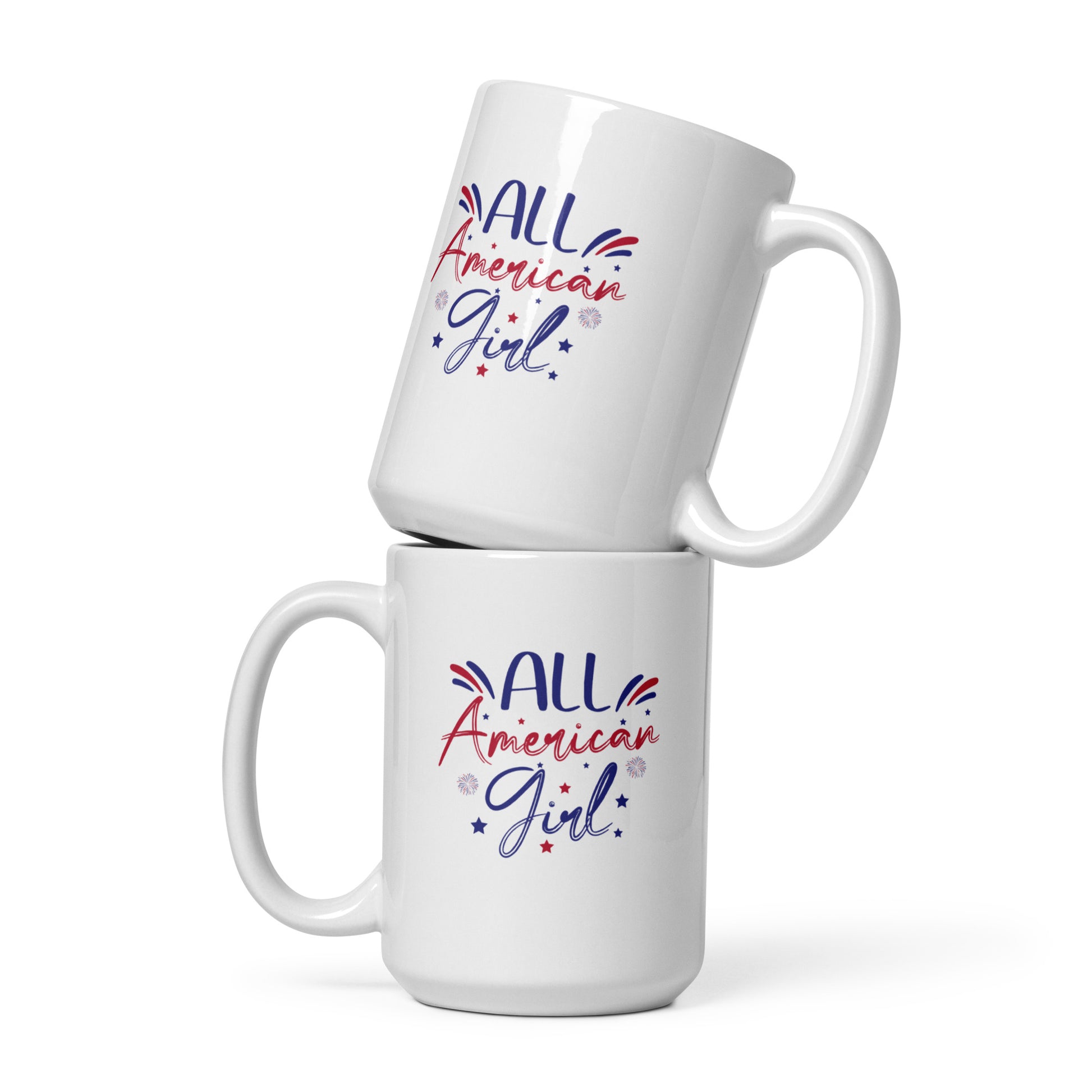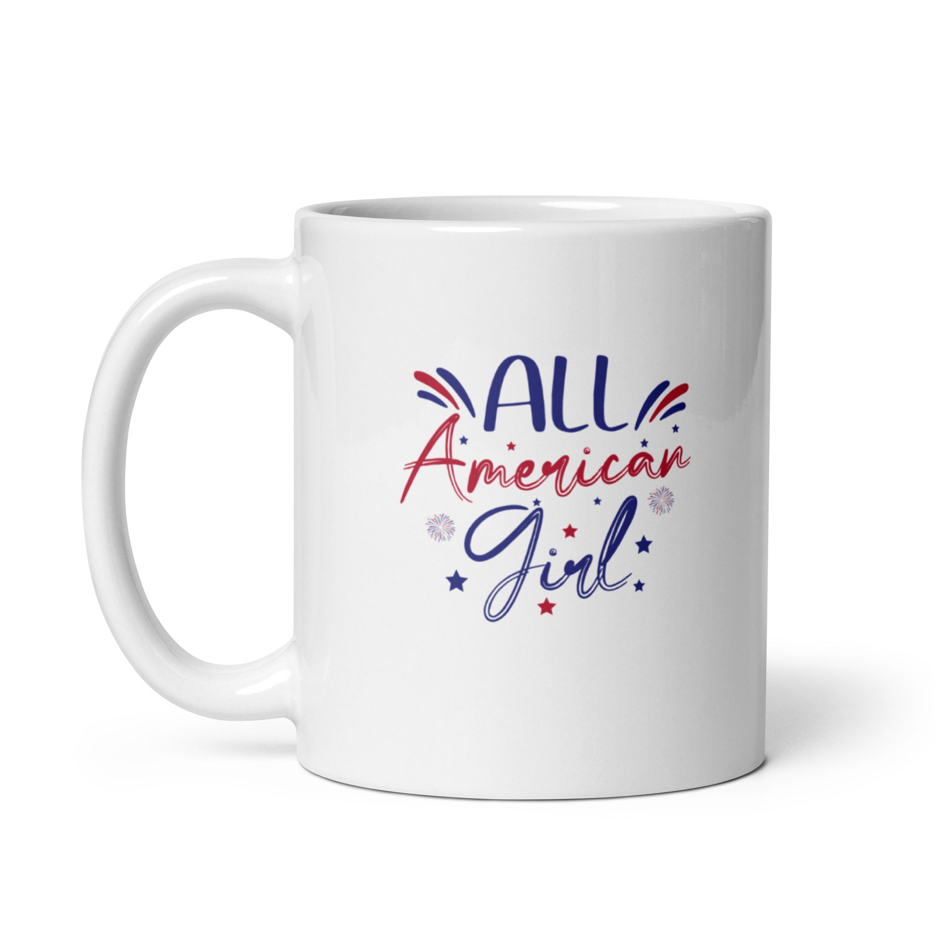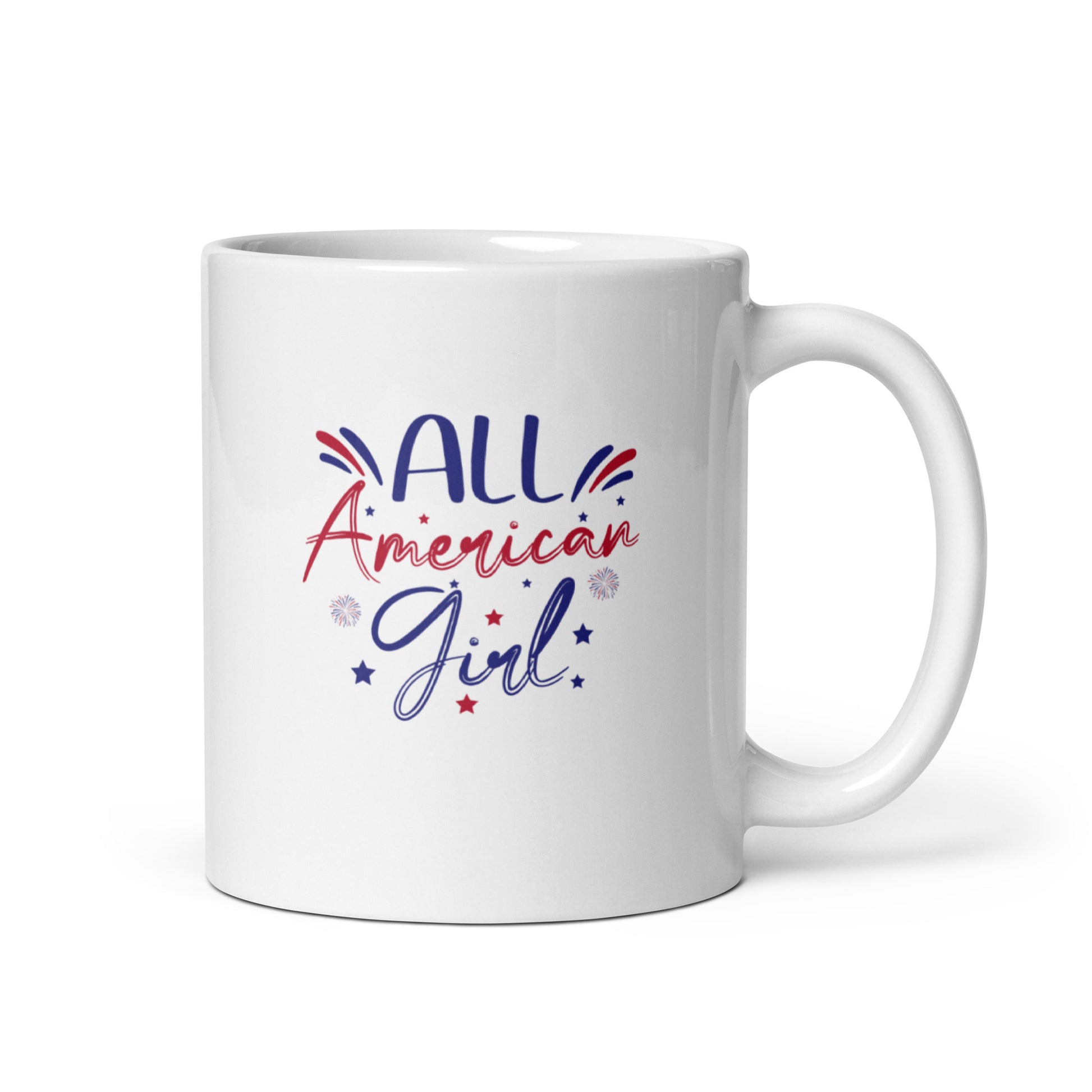 Embrace your patriotic spirit with our "God Bless America" mug featuring the clean and simple text "All American girl" in vibrant red, white, and blue. This mug is a timeless tribute to the unwavering strength and pride of being an all-American girl. The iconic American flag serves as the backdrop, symbolizing the values of freedom, independence, and unity. With its minimalist and bold design, this mug exudes a classic and stylish appeal. Sip your favorite beverage in style while celebrating your love for your country. Crafted with high-quality materials, this mug offers both durability and comfort. Let this mug be a daily reminder of your pride as an all-American girl and your unwavering devotion to the land of the free. Show your love for America with every sip and let your patriotic spirit shine. It's sturdy and glossy with a vivid print that'll withstand the microwave and dishwasher.