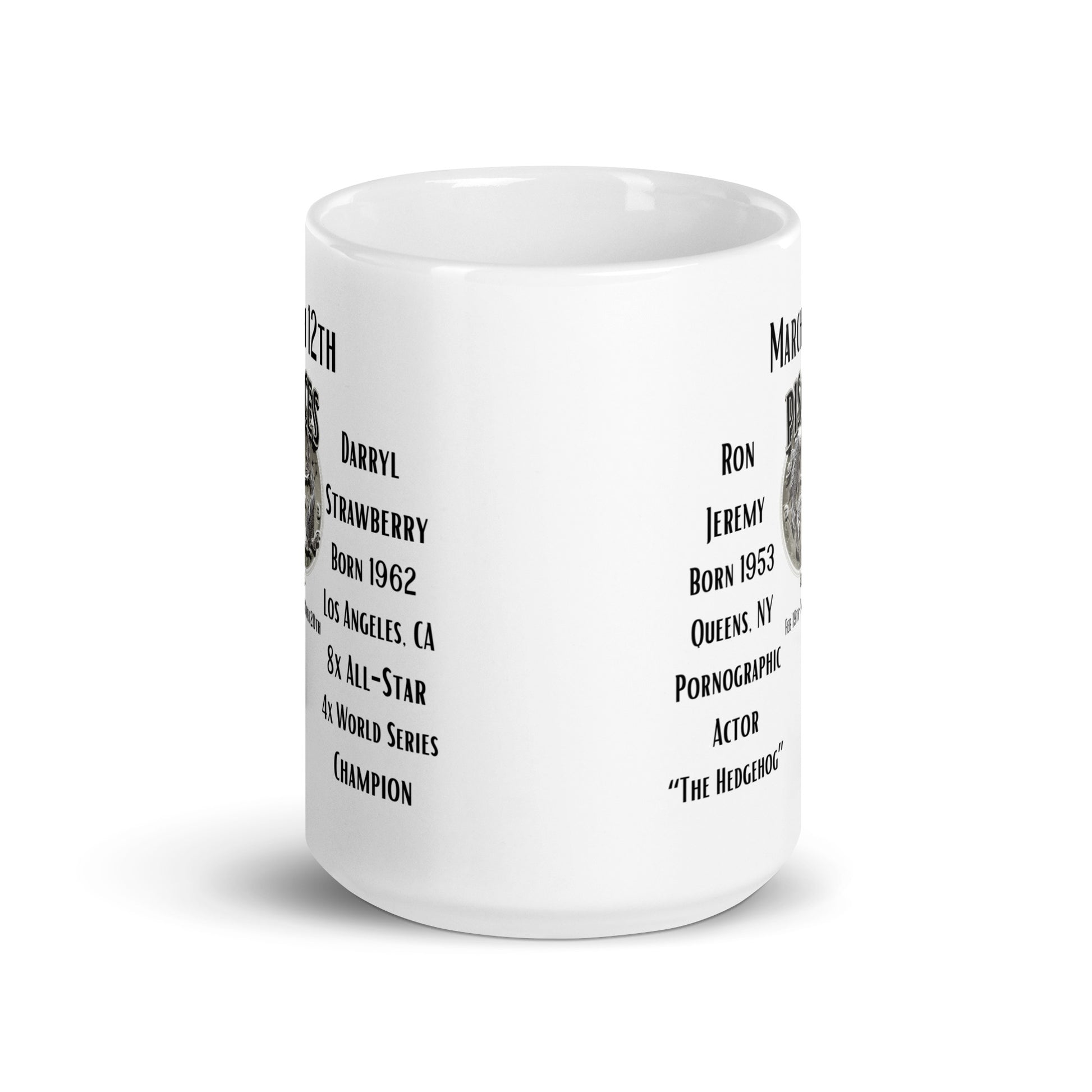 On This Day: Birthday Series - March 12th - (A) Ron Jeremy & Darryl Strawberry - White glossy mug