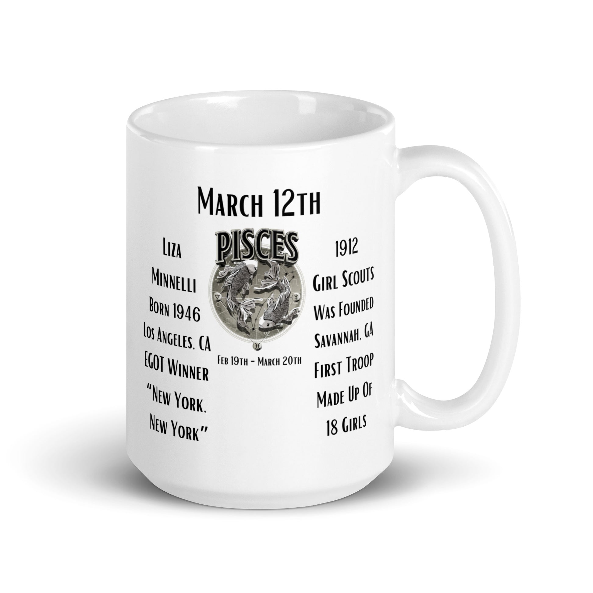 Celebrate a day of talent and empowerment with our "On This Day: Birthday Series" mug for March 12th. This date honors the birth of the dazzling Liza Minnelli, born in 1946, a true star of stage and screen known for her electrifying performances and captivating presence. It's also a day to remember the founding of the Girl Scouts in 1912, an organization that has played a crucial role in inspiring and nurturing the potential of millions of girls. Enjoy your morning coffee while reflecting on the legacy of a legendary performer and the strength and spirit of young girls around the world.