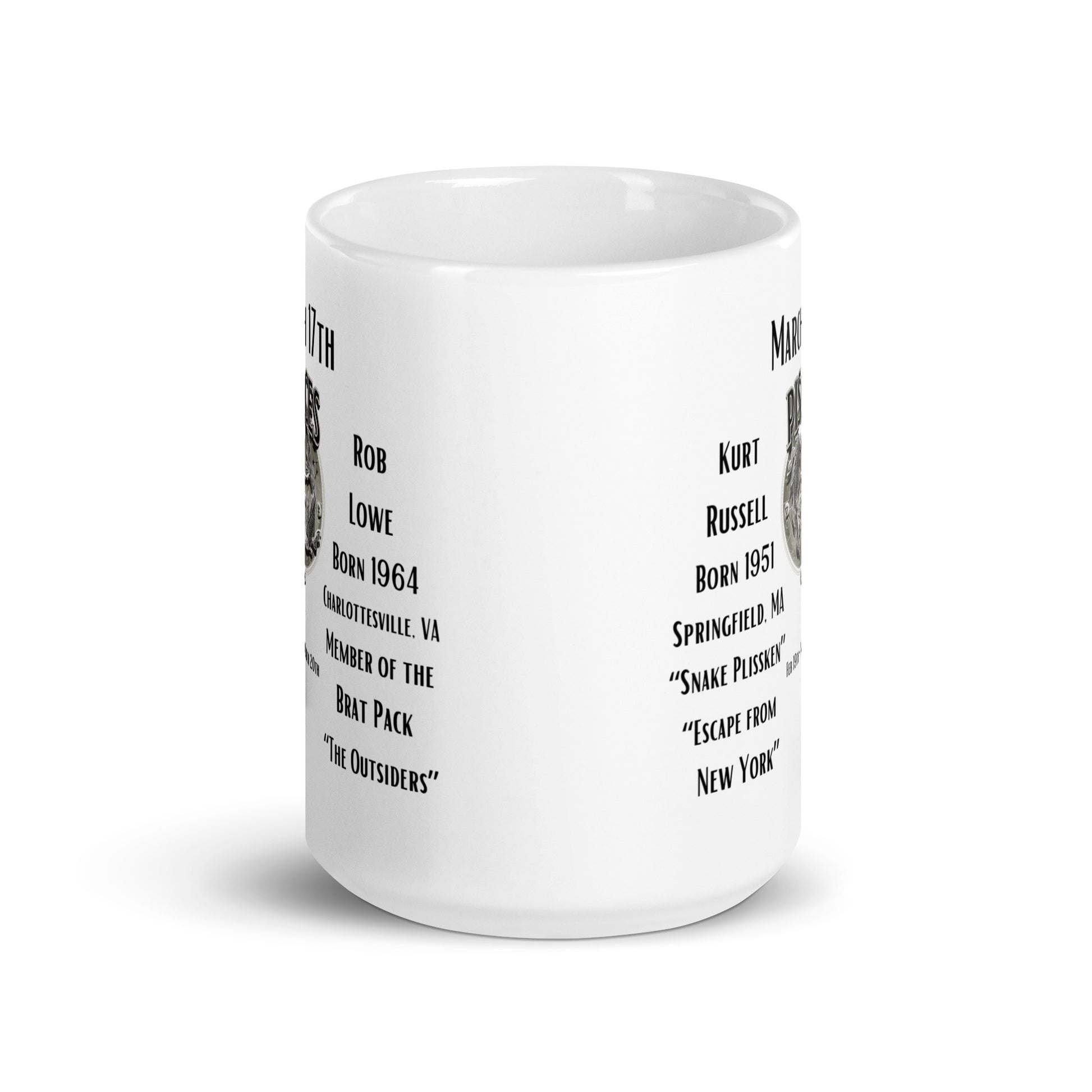 On This Day: Birthday Series - March 17th - (A) Kurt Russell & Rob Lowe - White glossy mug