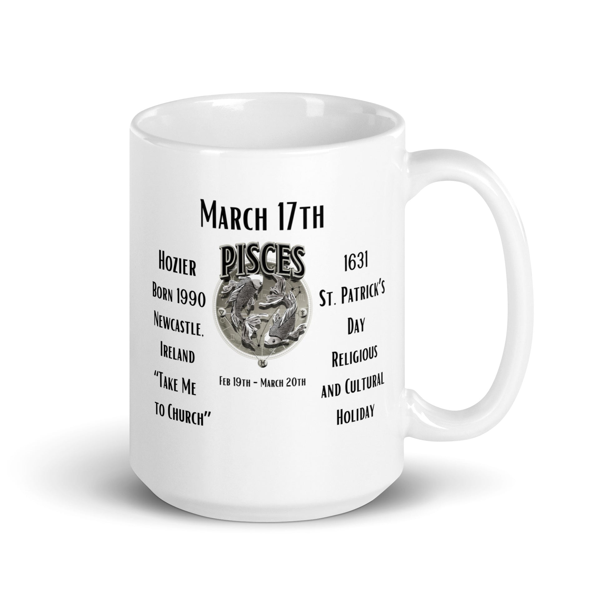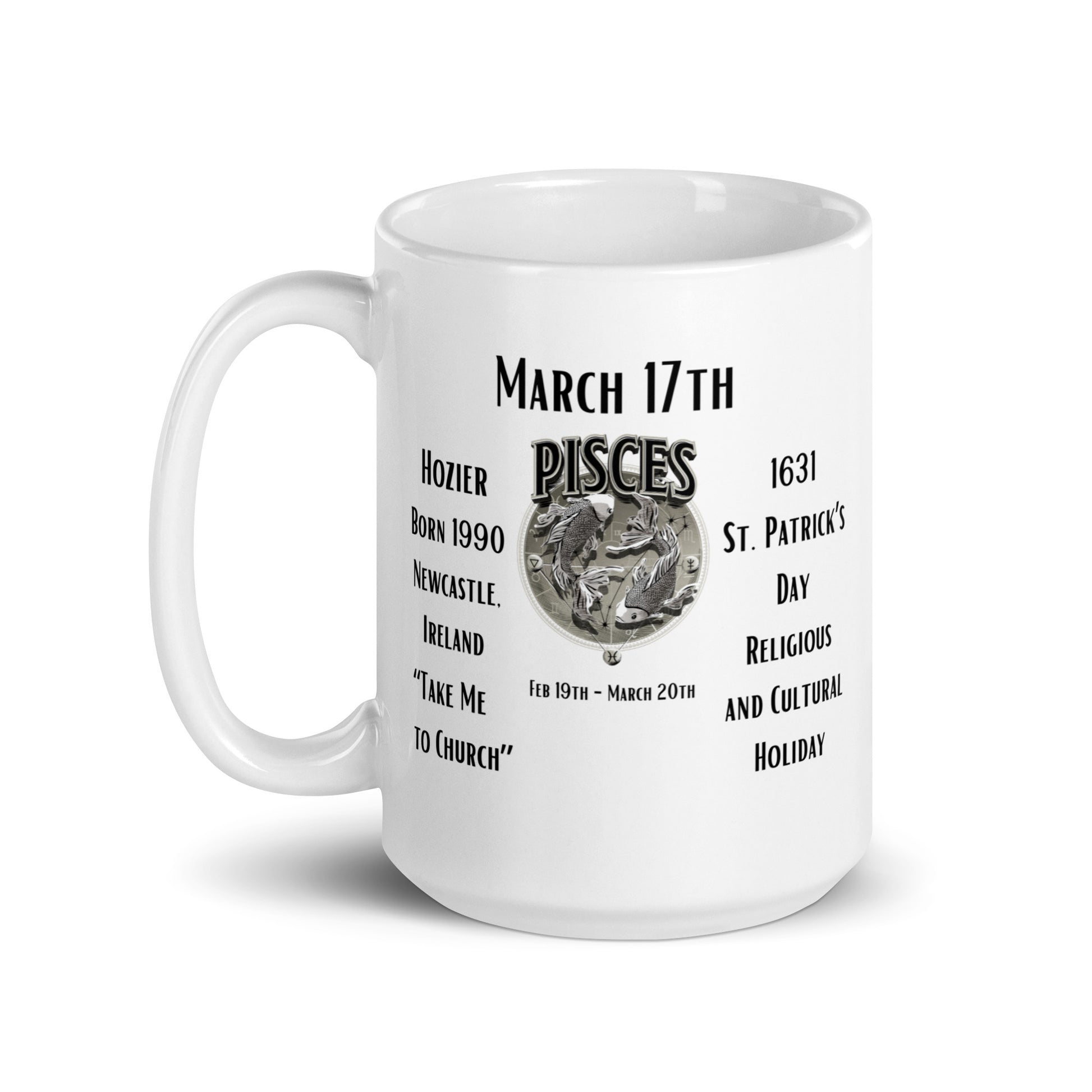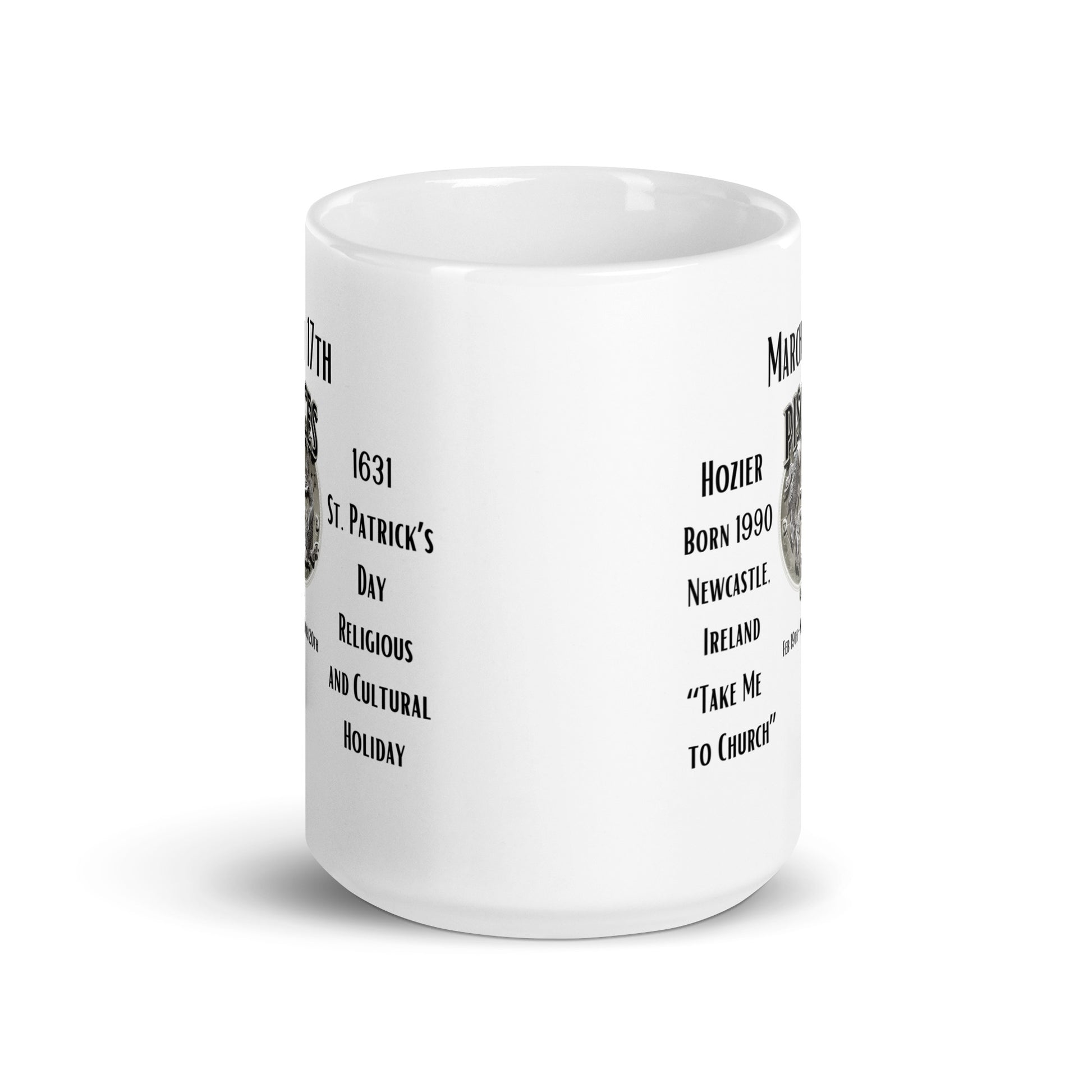 On This Day: Birthday Series - March 17th - (B) Hozier & St. Patricks Day - White glossy mug