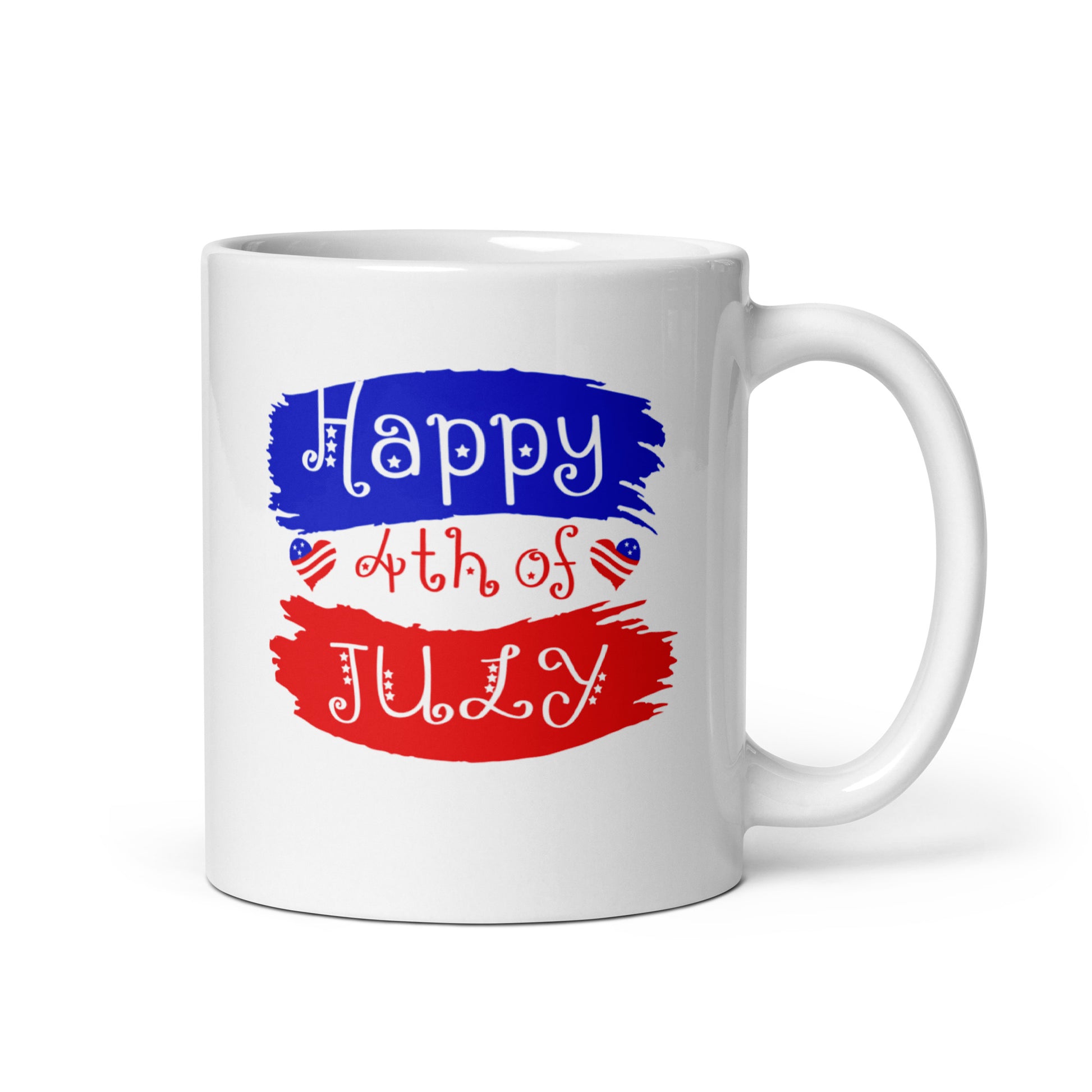 Celebrate the joy and spirit of Independence Day with our 4th of July Mug. Featuring the cheerful text "Happy 4th of JULY" in bold red, white, and blue, this mug is the perfect way to express your patriotic pride. Crafted from high-quality ceramic, it's sturdy and microwave-safe, making it ideal for enjoying your favorite hot beverages. Whether you're sipping coffee in the morning or indulging in a refreshing drink during the holiday festivities, this mug will be your go-to companion. The vibrant design, inspired by the American flag, captures the essence of the 4th of July celebration. It's a wonderful gift for friends and family, or a great addition to your own collection of patriotic mugs. So raise a toast to freedom, gather with loved ones, and let the fireworks light up the sky as you enjoy your favorite beverages in our 4th of July Mug. Happy Independence Day!