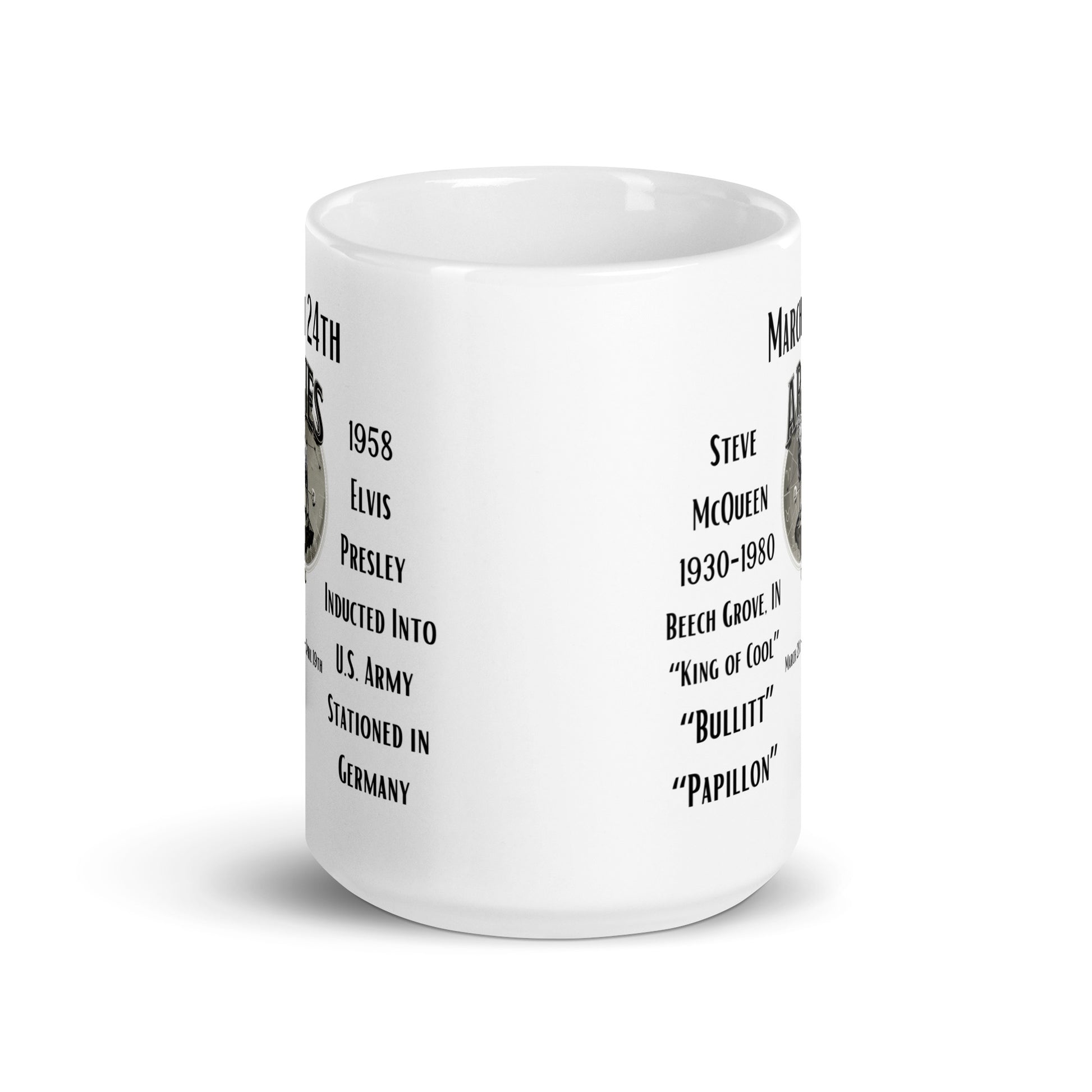 On This Day: Birthday Series - March 24th - (A) Steve McQueen & Elvis Presley - White glossy mug