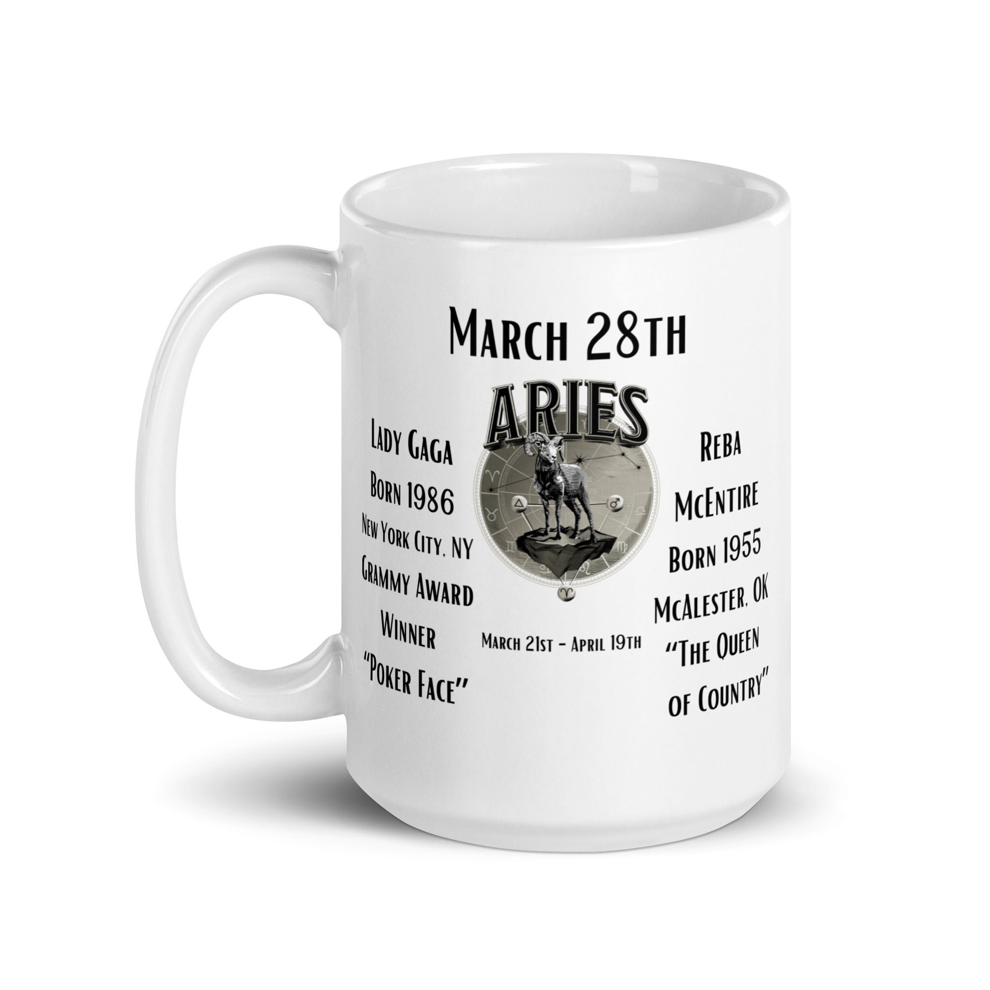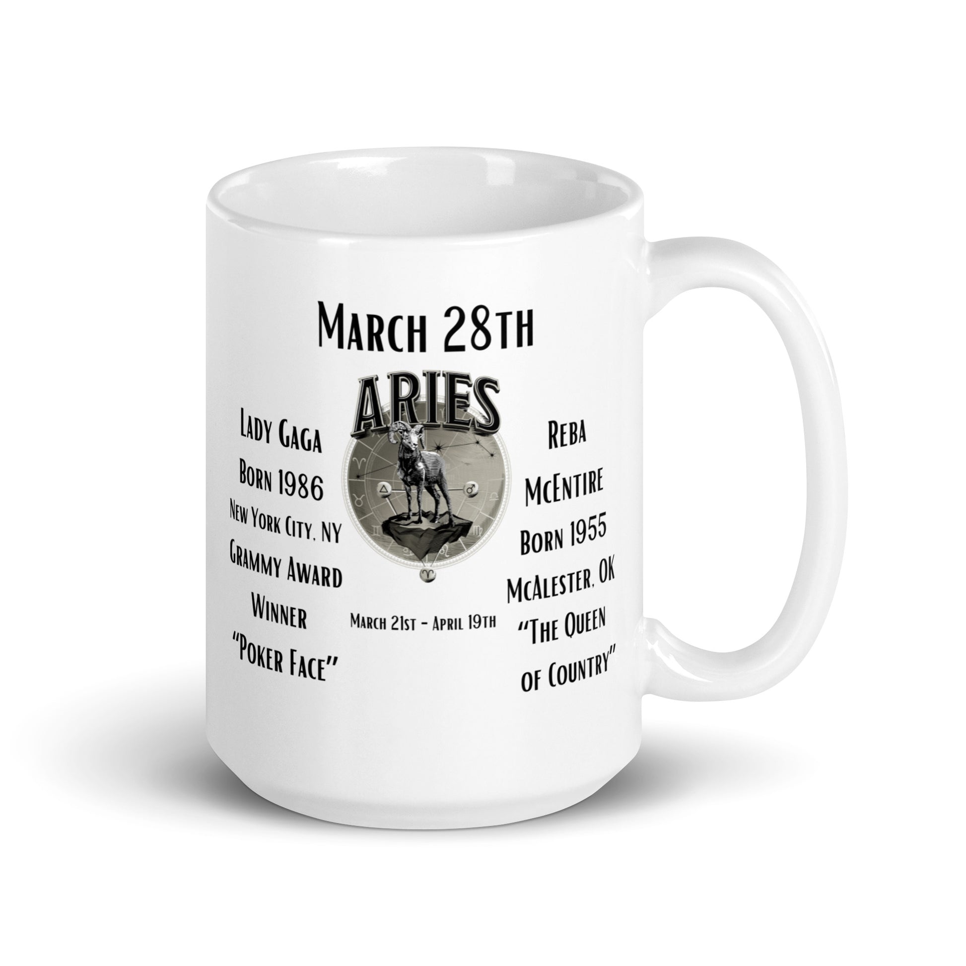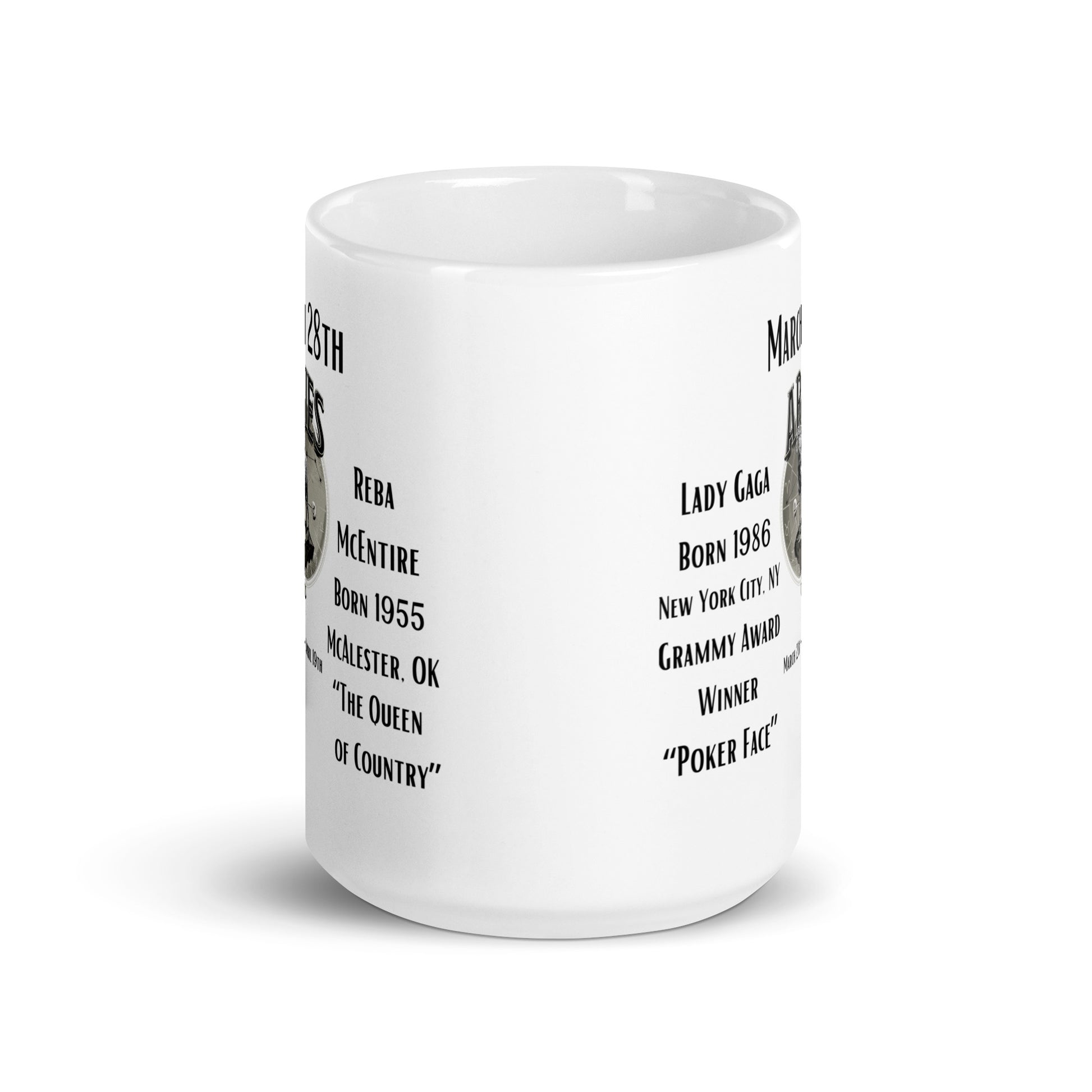 On This Day: Birthday Series - March 28th - (A) Lady Gaga & Reba McEntire - White glossy mug