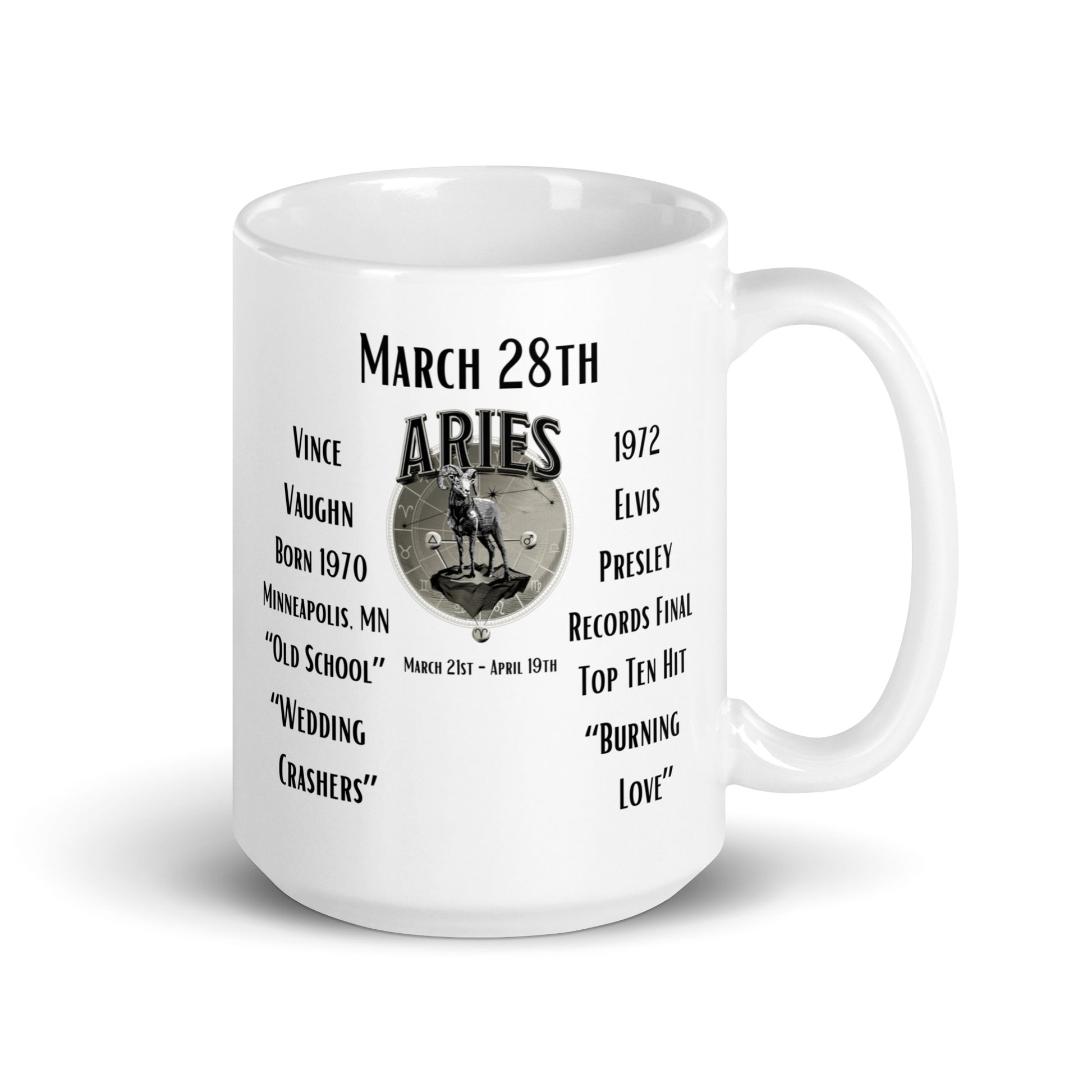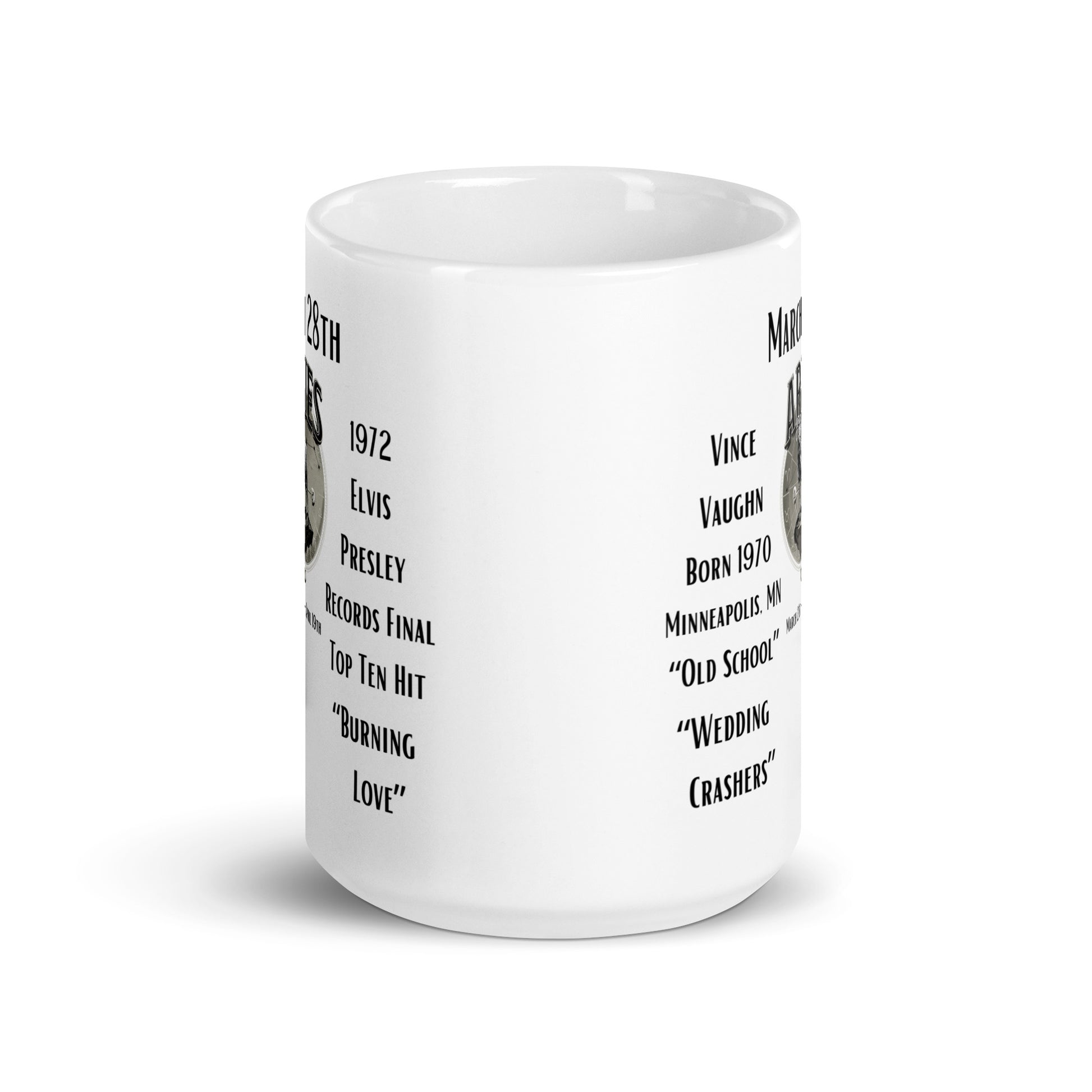 On This Day: Birthday Series - March 28th - (B) Vince Vaughn & Elvis Presley - White glossy mug