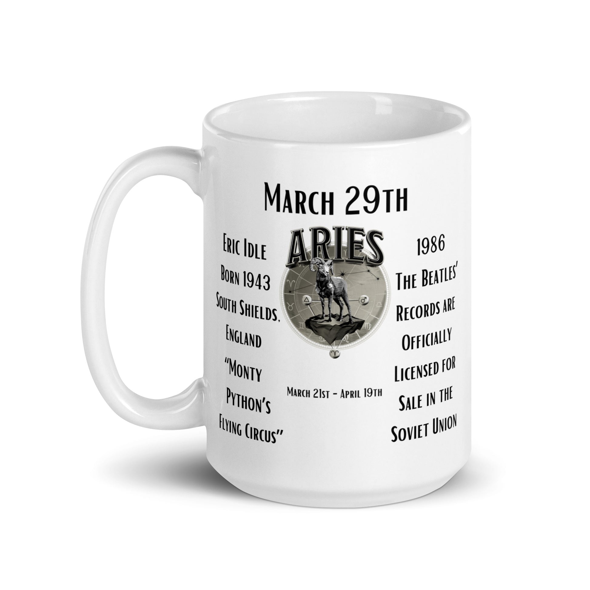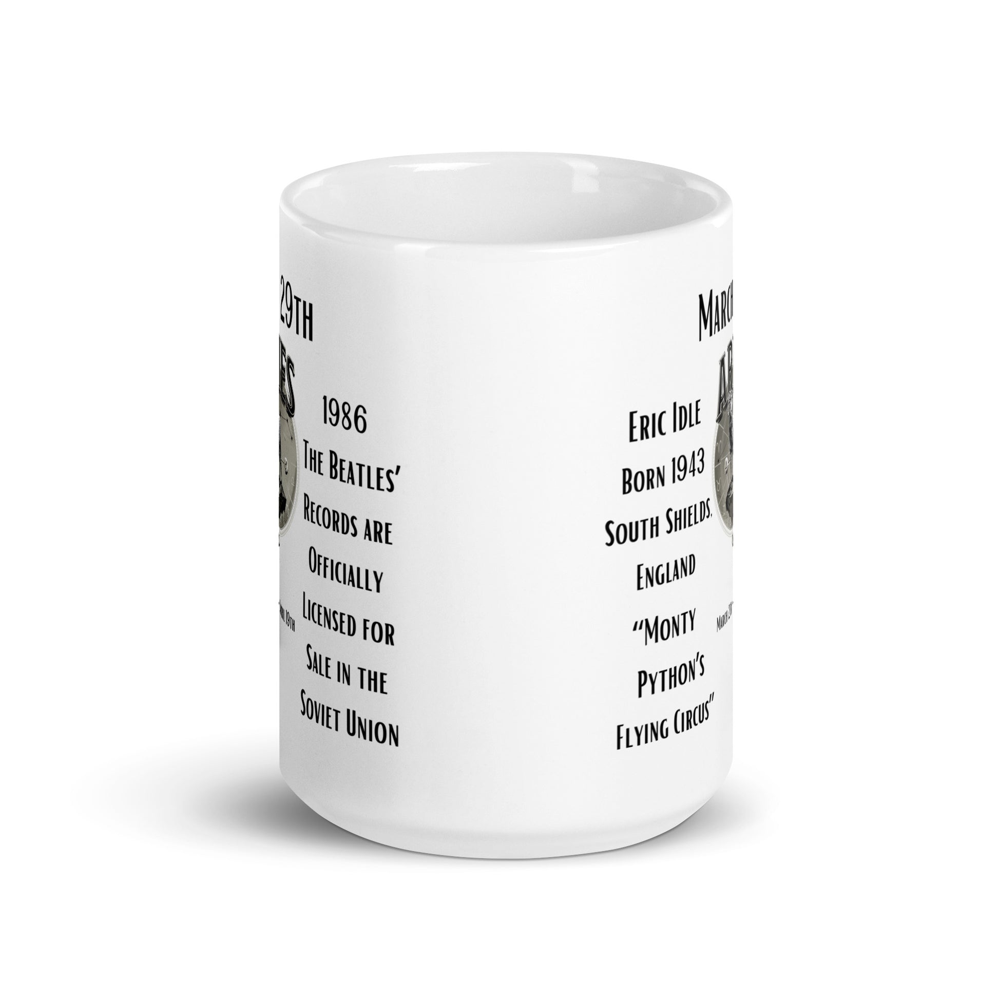 On This Day: Birthday Series - March 29th - (B) Eric Idle & The Beatles - White glossy mug