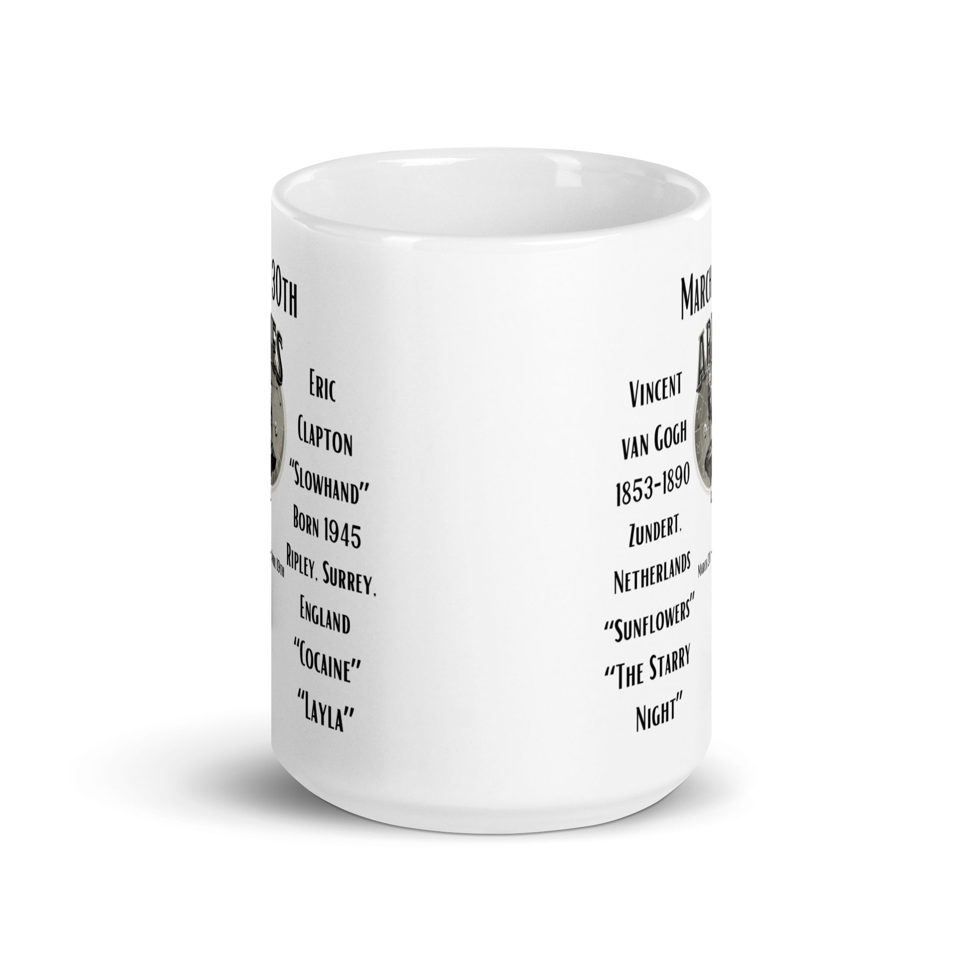 On This Day: Birthday Series - March 30th - (A) Vincent van Gogh & Eric Clapton - White glossy mug