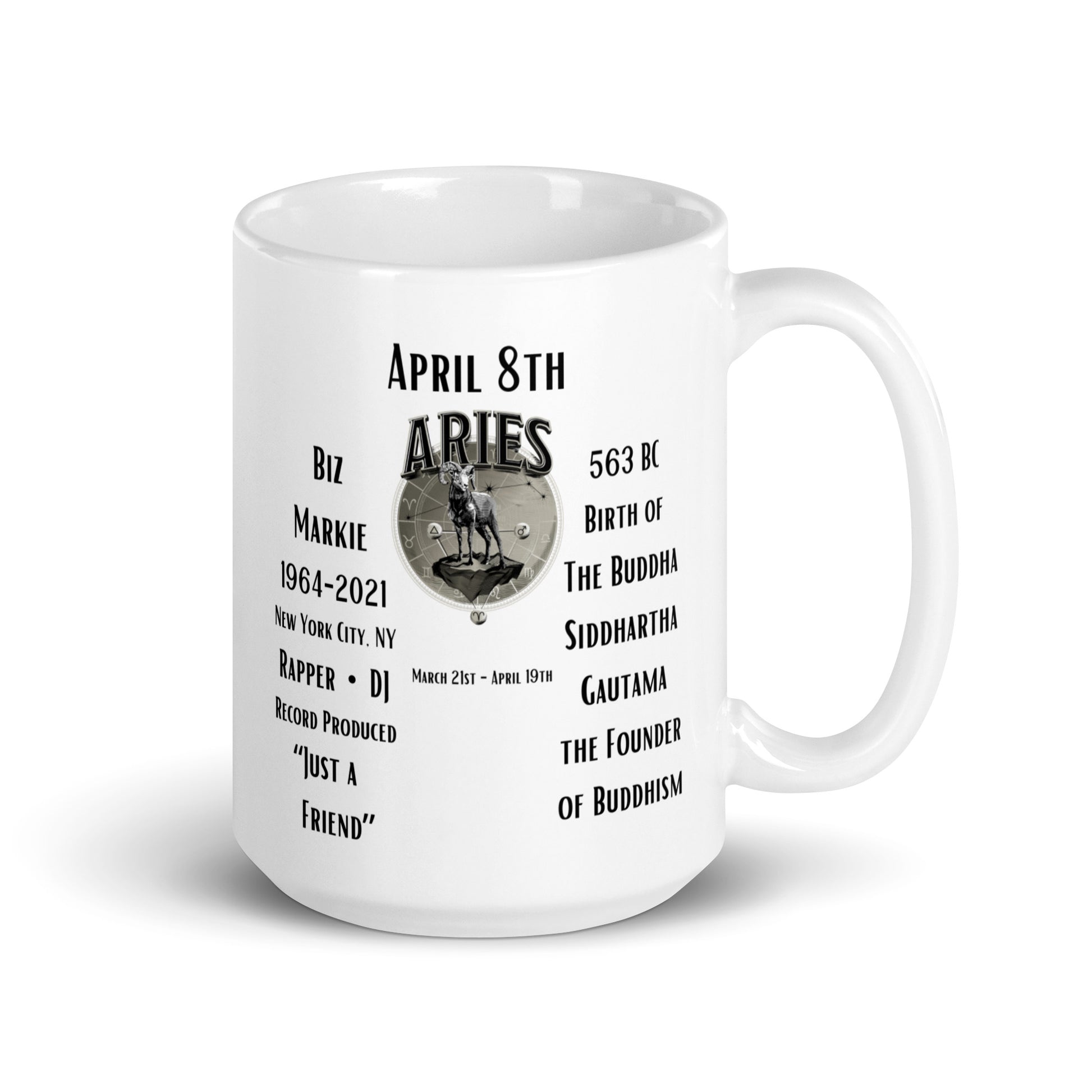 April 8th resonates with the vibrant rhythms of hip-hop and the profound echoes of ancient wisdom. On this day, we celebrate the birth of Biz Markie in 1964, a legendary figure in hip-hop known for his beatboxing skills, humorous storytelling, and unforgettable tracks. This date is also revered as the traditional birthdate of Buddha in 563 BC, a pivotal figure whose teachings on compassion, enlightenment, and mindfulness have influenced countless lives around the world. Embrace this mug as a symbol of artistic creativity and spiritual depth, a perfect homage for those who appreciate the beats of life and the journey of inner peace.