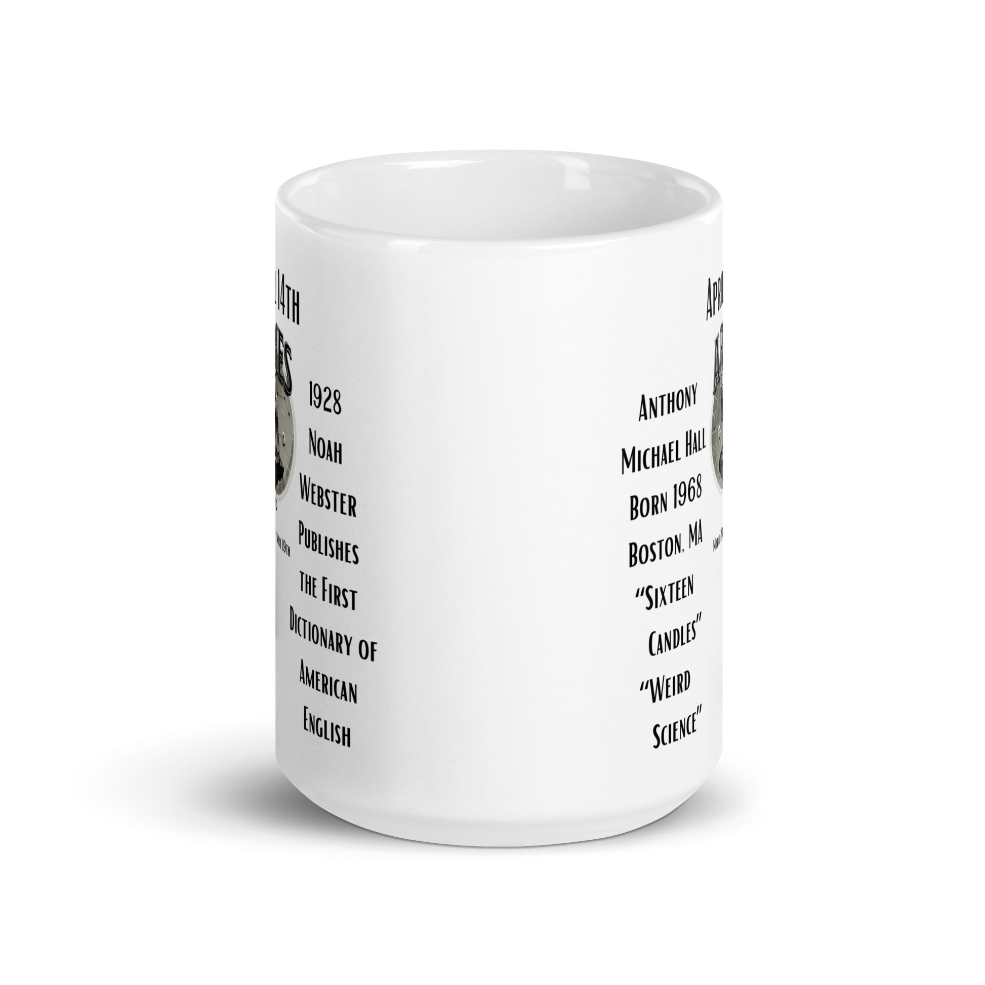 On This Day: Birthday Series - April 14th - (B) Anthony Michael Hall & Webster's Dictionary - White glossy mug