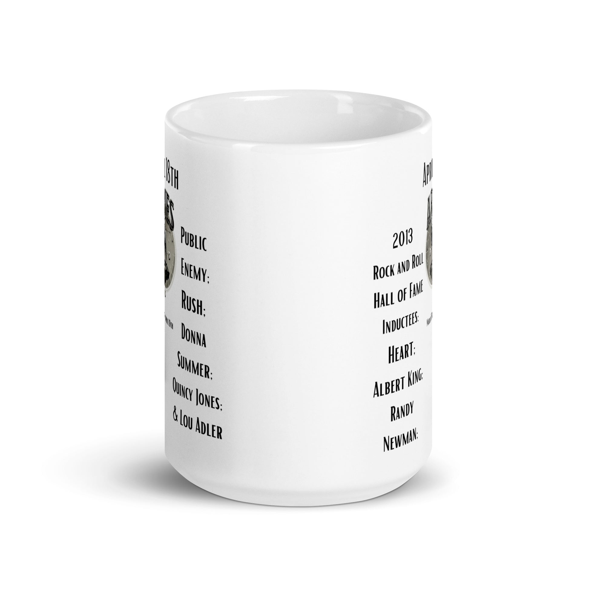 On This Day: Birthday Series - April 18th - (B) 2013 Rock and Roll Hall of Fame Inductees - White glossy mug